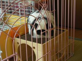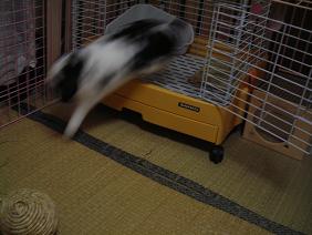 え~いやぁ~おいらの足から牧草が生えたよぉ~一瞬ヒヤッと びっくりのたかぽん。ぴょんの足に何かが刺さったとおもったら・・・牧草が足の毛の間に 挟まっていました・・・