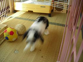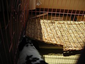 毎日元気なこの方。今日は いつになくとっても元気 カメラも追いつけない(フローリングじゃ滑ると思って 敷いたマットも意味なし・・・ もう~ぐじゃぐじゃついでに・・ゴザまで移動しちゃって・・・)でも やっぱり疲れちゃうのかなぁ~。走り回った後は・・・そろそろ・・新しいござにしなくちゃ・・・穴あき多くなってきちゃった