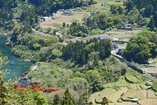 穴内川(吉野川の上流部)に沿って走る土讃線の列車を山の上から大俯瞰する構図は、土讃線の高知・山岳部のカットでは、ほとんどお決まりの絵柄、いわば「絵はがき写真」です。「絵はがき写真」というと、必ずしも良い意味ばかりでは使われません。「見慣れた」「誰でも撮れる」写真という意味も、言外に含まれているように思います。でも、「絵はがき写真」をあなどることなかれ。カメラマンが自分の持つ能力と器材の性能をフルに生かし、場所の選択やタイミング、光線状態など、最高の瞬間を切り取ることに全力を傾注した最高の1ショットが「絵はがき的」であったとしても、わたしは全く問題ないと思うのです。逆に言うと、定番だからこそ安心して見ることができる良さもあると思います。この日、穴内のお立ち台から見下ろした景色は、最高の状態でした。萌え出ずる新緑の木々は光り輝き、穴内川の水はあくまで澄んで滔々と流れています。加えて順光線。そこへ高知に向かって駆ける特急「南風」が差しかかります。ああ、この場所なら、どうしてもこの切り取り方になってしまうなあ。そう思いながらシャッターを切った、わたしの中での「絵はがき写真」が本日の「思い出の1枚」です。今日5月10日は、東海道線にトイレ付き列車が登場した日(1889年)、鉄道唱歌第一集が出た日(1900年)、日本気象協会創立記念日だそうです。