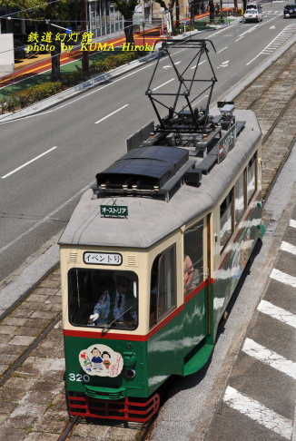 先ほど高知から帰ってきました。この連休は天気が良かったため、連日、高知県内を走り回っていました。まあ、妻の実家なので、わたしが居ても居なくても、それほど大勢に影響がないのと、いつものことなので義母も慣れっこになっています(笑)。さて、今日からしばらく「土佐日記」を続けます。高知は今、「龍馬」ブームで沸き返っています。桂浜へ通じる道は観光客の進入が規制され、少し離れたところから無料のシャトルバスがピストン輸送されていましたが、確かに、例年大変な渋滞が起こるため、今年の試みは概ね好意的に受け止められていました。そうした観光イベントの一環として毎年、連休中に行われる土佐電鉄の「電車の日」イベントにも行ってきました。去年も参加したのですが、今年は「龍馬伝」の影響もあり、一般開放された電車庫内では龍馬君の着ぐるみが愛嬌を振りまいていました。「福山龍馬」とは違って、可愛い系の癒しキャラです。毎年、この「電車の日」だけに運転されるポルトガルの市電をバックに記念の1カットを撮らせてもらいました。今日5月4日は、ラムネの日、ファミリーの日、競艇の日だそうです。