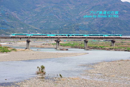 鉄橋を渡る283系オーシャンアローの特急「くろしお」紀勢本線といえば、オーシャンアローも忘れることはできません。あの独特のドルフィンフェイスは、ユニークでございます。列車の運行時刻と、次の撮影ポイントへの移動時間を考えた結果、少し早目の昼食をとりました。そして予定していたよりも早く食事が終わったため、当初はあきらめていた列車の撮影に間に合うかも、と思い、有田川の鉄橋を臨むポイントへと車を走らせました。実は、この朝もこの近くへ来ていたのでありますが、ギリギリで間に合わなかったのでございます。オーシャンブルーに身を包んだ283系が、白浜方面へ向かう人たちの夢を乗せて長い鉄橋を渡ってまいります。それを眺めながら、朝のリベンジを果たせて、ちょっぴりうれしく思ったわたくしでございました。撮影地:紀勢本線紀伊宮原~藤並今日3月25日は、電気記念日、歯茎の日、天神の縁日だそうです。