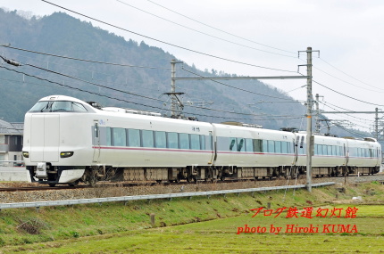 有田川の鉄橋を渡る381系特急「くろしお」昨日(3/20)は紀勢本線の有田周辺を走り回ってきました。今回のダイヤ改正から紀勢本線でも新型の287系「くろしお」が走るようになったため、その初撮りと、あわせて、これまでとどう違ったのかを確認するためでありました。大阪を出るときは晴れており、このところ休みの日に雨や曇り日が続いていて、撮影を取り止めたこともあったため、久しぶりの好天にウキウキしながら出発したのでございますが、目的地である和歌山県の有田に着いたときは曇り空。あ~あ、晴れると思ったのになあ……。文句を言っても始まりません。早速有田川の鉄橋で「くろしお」を撮影することにいたしました。今回のダイヤ改正から、これまで「くろしお」「スーパーくろしお」「オーシャンアロー」の3本立てであった「くろしお」一家は、本家帰りして「くろしお」一本に統一されることになりました。ただ、使用される車輛は、基本的にこれまで同様、381系とパノラマタイプの381系、オーシャンアローの3種類であり、今回287系が加わり、この状態が今年の夏まで続くのでありましょう。有田川の鉄橋を見上げるかたちで構図を決めましたが、待つ間もなく列車がやってまいりました。パノラマタイプの381系であります。この先頭部分はLED表示なのですが、これまであった「スーパー」の文字がなく、「くろしお」だけの、いたってシンプルな表示であります。なるほど、こういうところが変更点なのね、と細かいところをチェックして、とりあえずは初撮り終了。撮影地:紀勢本線紀伊宮原~藤並今日3月21日は、太陽の日、卵の日、国際人権差別撤廃デー、ランドセルの日、催眠術の日、カラー映画の日、ふれあい交番の日、漬物の日だそうです。