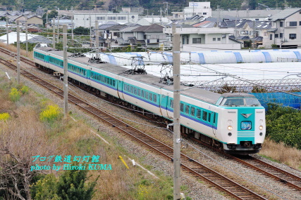 183系国鉄色特急「きのさき」本日から新しいダイヤでの運転開始でございます。昨晩のニュースでは「100系」「300系」新幹線や寝台特急「日本海」のラストランの様子が報じられておりました。これらの列車のお名残りについては、先月から今月にかけて、数度にわたってこのブログでも書かせていただきました。わたくしなりにお別れをしたつもりでありますが、天気のあまりよくない日ばかりに撮影せざるを得なかったのが、ちょっぴり残念。大阪着のラスト「日本海」を待ちうけるファンで各地は賑わうことと思われますが、本日も大阪地方の天気はよくないようで、みなさんの涙雨か、と思ったりしています。残念ながらわたくしは、怒涛の年度末業務繁多につき、本日も出勤。「日本海」が大阪に着く10時20分過ぎには、一人静かに心の中で「ありがとう」の想いをめぐらせたいと思っています。さて、183系の国鉄色でありますが、新しい時刻表を見ていて気づきました。山陰本線も福知山線もダイヤ改正以前と同様、「新型車輛で運転」と記された列車と、そうでない列車が混在しているのであります。これはダイヤ改正以前と全く変わりません。ということは、今しばらくの間、国鉄色の183系は走り続けるのでありましょうか。近いうちに確認しに行かなければ、と少しだけテンションが上がったわたくしでございました。撮影地:山陰本線綾部~高津今日3月17日は、漫画週刊誌の日、聖パトリックの祝日、緑の日、世界海の日、安全の日だそうです。