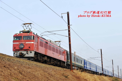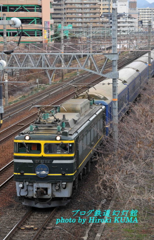 トワイライトがまが牽く「日本海」ローピン「日本海」の翌日も出かけましたが、この日はトワがま「日本海」。寒いし、天気は悪いしと、精神的な盛り上がりに欠けるロケーションのなか、やってきたのが、トワがまかあ。でも、贅沢は申しますまい。時間が経てば、このトワがま「日本海」のカットすら貴重な記録となるのですから。向こう一週間の天気予報はあまり芳しくありません。予報的には日曜が一番ましなようですが、それでもすっきりした晴れ間ではないみたいです。ただ、残念なことに、日曜の朝はどうしても外すことのできない予定が入っていて、撮影には出かけられないのでありますよ。ああ。今日あたりから花粉が飛びだしそうな雰囲気で、花粉症のわたくしは、そろそろマスクマンに変身しなければなりません。あと何回「日本海」の姿を目にすることができるか分かりませんが、これから見る「日本海」は、もしかすると少しぼやけたものになっているかもしれません。それは花粉でかゆく、涙目になったから、というわけではないのですよ。ああ、涙。撮影地:東海道本線茨木~千里丘今日3月6日は、世界一周記念日、スポーツ新聞の日、ジャンヌダルクの日、弟の日だそうです。