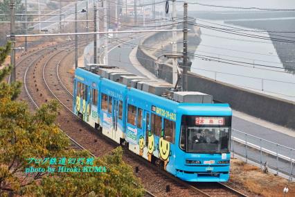 カキの養殖棚が広がる海沿いを走る広島電鉄の連接車広島に行けば、やはり広島電鉄を撮影しないわけにはまいりません。広電西広島と広電宮島口間の宮島線は、専用軌道の鉄道線であり、この区間を走る電車はほとんど連接車となっています。地御前と阿品東の間で電車は海沿いを走ります。以前から海と広電を組み合わせた写真を撮ってみたいと思っていたのでございますが、今回ようやくその願いを叶えることができました。併用軌道の路面電車区間と異なり、電車は時刻表どおり、ほぼ10分間隔で運転されます。電車を待っている間、すぐそばに広がる海を眺めていたのでありますが、カキの養殖棚が一面に広がっており、それを見るうち、今夜は焼ガキで一杯だな、と思わず唾を飲み込んだ呑んべのわたくしでございました。撮影地:広島電鉄地御前~阿品東今日3月10日は、佐渡の日、水戸の日、ミントの日、サボテンの日、砂糖の日、農山漁村婦人の日、東京都平和の日、東京大空爆の日、LPガス消費者保安デー、植物油の日だそうです。