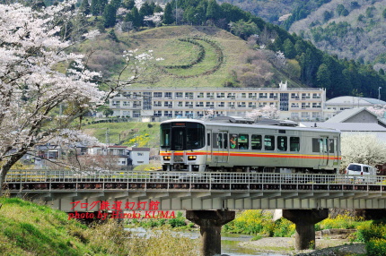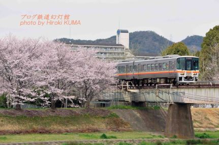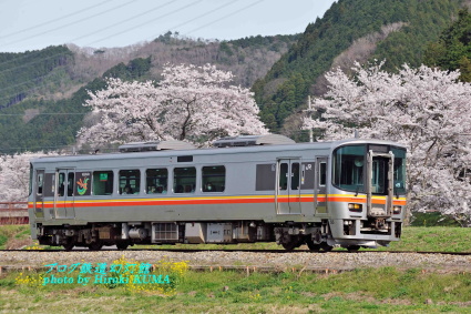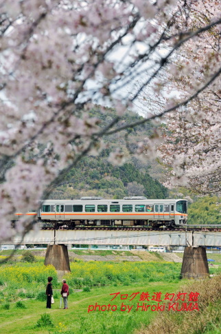 三日月マークをバックに鉄橋を渡る姫新線のキハ122新幹線の桜流しなどを撮ったあと、もう一度、姫新線の桜撮りをすることにして北上いたしました。姫新線と言えば、夏のひまわりが有名でありますが、春の桜もなかなかのものでございます。以前から桜の季節にも行ってみなければ、と思っておりましたので、長年の課題をこなすことができたのであります。午後のポイント、最初は三日月町からスタートしました。三日月町の特徴は、町のシンボルマークである三日月を山の斜面に描いていることです。それをきれいに眺められる場所にある橋が「桜橋」。この季節にぴったりのポイント名ではありませんか。ただ、姫新線もこのあたりに来ると運転本数が少ないため、ミスは許されません。バックの三日月マークと手前の桜、鉄橋とのバランスを考えて構図を決めます。そして三日月駅を発車した単行のキハ122が、ゆっくりとカーブを曲がって鉄橋に差しかかってきました。うん、いい感じです。撮影地:姫新線三日月~西栗栖今日4月24日は、植物学の日、日本ダービー記念日(第1回日本ダービー、当時の名称は東京優駿大競争を東京目黒競馬場で開催。優勝は一番人気のワカタカ1932年)だそうです。