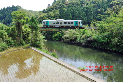 田植えが終わった田んぼのそばを駆ける1500形普通気動車予讃線が電化されているとはいえ、それ以外は管轄エリアの大部分が未電化区間のJR四国。以前は、普通車のほとんどがキハ40や47で、コーポレートカラーである青と白のツートンは、わたくし、嫌いじゃありませんでした。しかし、車輛の置き換えが進んだ結果、今やほとんど見かけることがなくなりました。寂しいことでございます。代わって台頭してきたのがエコ気動車の1500形。今風の顔立ちでありますが、ステンレスボディに施された塗装がグリーン。自然の景色にとけ込むのはよろしいのですが、遠目に見ると、どこにいるのかが分からない。ちょっぴり困ったものでございます。キハ185系「むろと」を撮ったあと、少し移動して反対方向からやってくる普通を小さな鉄橋のそばで待ちました。田植えが終わった水田では、稲の苗がきれいに列を作り、水面に木の影が落ちて今の季節らしい爽やかさが漂っています。こういう雰囲気なら、グリーンな1500形もお似合いかも。撮影地:牟岐線阿波福井~新野今日6月3日は、測量の日(国土地理院、1989年)、ムーミンの日だそうです。