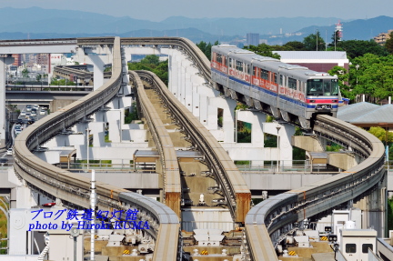 曲線美が印象的なモノレールの軌道当初の予定では曇りか雨ということでしたが、午後になっても晴れ間がのぞいています。午前中の撮影で、ある程度は満足していたのでありますが、そのときよりも日差しが強いため、夕方になって、撮影の虫が騒ぎます。でもなあ。今から出ていくのも正直、面倒臭いし……。ぶつぶつ、ぐだぐだしていると、万博公園にでも行ってきたら? あそこの駅はおもしろいわよ、と妻から声がかかりました。花好きの妻は、わたくしが一人鉄で出かけているとき、万博公園へ散歩がてら花をよく見にいっているのでございます。そおかなぁ~? 素人の目と鉄の目とは見方が異なるので、おもしろさの感覚が違うからな、と思いましたが、ここは山の神の指示に従ってみますか。モノレールの万博記念公園駅で下りてホーム端に立つと、線路の形状がウネウネとカーブを描き、これはおもしろい! 俄然スイッチが入り、いろいろとアングルを探し始めるのですから、我ながら浅ましい。一階上の改札階から見下ろした景色も、角度が違うだけで、こうも雰囲気が変わるものかと、これまた再び撮影モード全開。だてに何年も鉄の女房をやっているわけではないわな。夫の好みをよく分かってますがな、とあらためて脱帽。撮影地:大阪モノレール万博記念公園駅今日6月26日は、国連憲章調印記念日(国連)、国際麻薬乱用撲滅デー(国連)、露天風呂の日、ふろの日(毎月)だそうです。