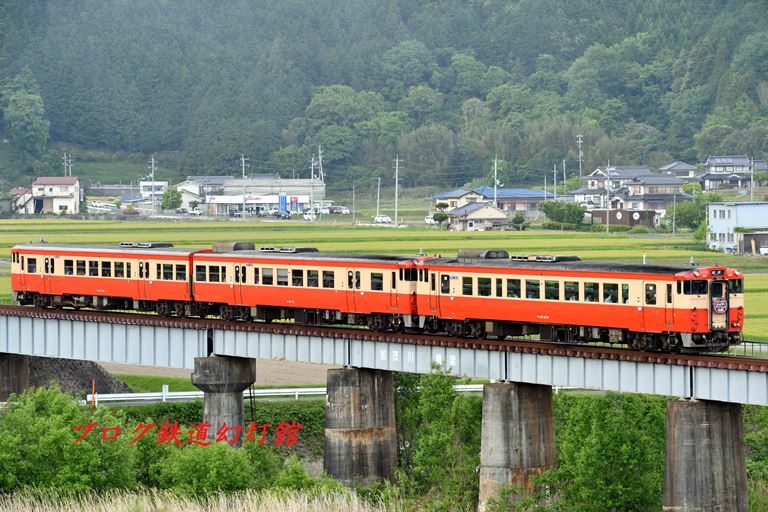 「みまさかスローライフ」の撮影は、昨年秋に続いて2回目です。前日の土讃線はわたくしの守備範囲ですが、因美線の「スローライフ」に関しては、クラフトケーさんに案内をお願いすれば大船に乗った気持ちでいられます。 前回は全くのお任せでしたが、今回は前回の経験をもとに、撮影ポイントをいくつかリクエストしました。その一つが松箒鉄橋です。この鉄橋は緩やかにカーブしており、順光側からサイド狙いで撮るグループと、逆光側からアウトカーブを見上げるグループとに分かれます。 この日は見事なほどに晴れ上がり、真っ青な空が広がっていますので、順光側で狙うのが定石でしょう。そう思って場所を探していると、橋脚のすぐそばに超ワイドアングルでスタンバイしている先客が一人いらっしゃいました。ご一緒させていただいてもよろしいですか、と声をかけて並ばせてもらうことにしました。 わたくしたちも、現地到着はそれほど遅い方ではなかったのですが、聞くと、かなり以前から待っているとのこと。逆光サイドからは、もしかすると写り込んでしまうかも、というビミョーな立ち位置です。しかし、先に構えた方が優先権を有するというテツの不文律により、あとから来られた逆サイドの方たちは、少しずつ立ち位置をずらし、写り込まない場所をセレクトされているようです。おかげで、こんな幸運でもなければ、まず撮影することができない超ワイド見上げカット、天空の「みまさかスローライフ」をゲットできました。 撮影地:因美線和知~美作河井 今日5月24日は、ゴルフ場記念日、伊達巻の日だそうです。 【激レア商品!】MICROACEマイクロエースA2578キハ24・46標準色