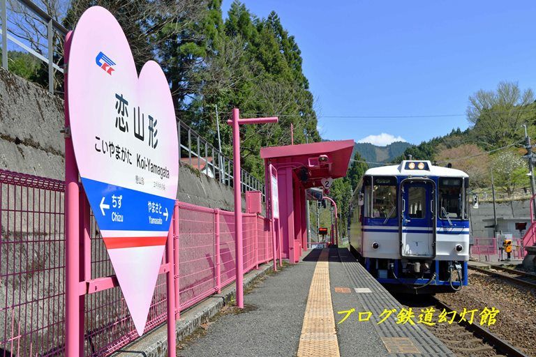 怪我をしたことで少し遠ざかっていましたが、その間に智頭急行ではいろいろなことが起こっていました。事前に少し検索したところ、「恋山形駅」がブームらしい、ということを知りました。これは行ってみなくては。 撮影を続けながら山あいの道を進むと、何もない所に突如出現したピンク色の駅。最初に見たときは正直、驚きました。 駅舎がピンクだけでなく、至る所にハートマークも描かれています。ハート形の駅名板、初めて見ました。さらに、待ち合いスペースには「鉄道むすめ」も描かれています。その名は「宮本えりお」さん。沿線では宮本武蔵が誕生し、同名の駅がある智頭急行ですから、姓がこれに因むのは当然のことでしょう。智頭急行の車掌として「スーパーはくと」に乗務している設定になっています。 ピンクの駅舎にハートマークの駅名板。鉄道むすめがいて、その他にもいろいろ趣向が凝らされている「恋山形駅」。はっきり言って、ここまでやれば、むしろ、潔い。 撮影地:智頭急行恋山形駅 今日5月5日は、こどもの日、端午の節句、児童憲章制定記念日、クスリの日(全国医薬品小売商業組合連合会1987)、ワカメの日(日本わかめ会、1982年)、おもちゃの日(東京玩具人形問屋協同組合、1949年)、子供に本を贈る日、自転車の日だそうです。 小さな轍、見つけた! ミニ鉄道の小さな旅(関西編) 智頭急行<特急街道の小さな列車> / 鉄道