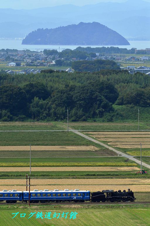 SL北びわこ1号をどこで撮るか。長浜の手前で1回撮影し、追いかけて2度目という回数重視にするか、午前は1回だけにして、午後で回数を稼ぐのか。朝一の送り込み回送でそれなりに満足できているため、協議の結果、午前中はゆったり構えることにしました。 天気も良いことから、久しぶりに虎御前山へ上がってみることにしました。北びわこ号の撮影では大きく2ヵ所、山から俯瞰できるポイントがあります。一つは田村山。もう一つが虎御前山です。いずれも琵琶湖を取り入れて撮影することができます。 久々の虎御前山は、頂上の様子が一変していました。以前あった青少年野外活動施設はすべてなくなり、更地に小谷城跡の記念碑が建つだけでした。戦国の武将・浅井氏の城ということで歴史的な文化遺産ですから顕彰するのは当然ですが、以前の様子を知っている者としては少し寂しい気がしました。 景観が大きく変わったのに加え、周辺の木々が成長し、見通しが効かなくなっているのも驚きでした。近い将来、この俯瞰ポイントはテツの名所から姿を消してしまうと思われます。以前は機関車と12系客車5輌を横位置できれいに収められたのですが、木の隙間から縦位置で機関車と次位の客車を収めるのが精一杯。竹生島をバックにできたのが、せめてもの救いでした。 撮影地:北陸本線虎姫~河毛 今日9月30日は、世界翻訳の日、交通事故死ゼロを目指す日、クレーンの日、くるみの日、京都市の路面電車が全廃された日(1978年)だそうです。 遥かなりC56 ポニーの詩情と宿命の行路/塚本和也【2500円以上送料無料】