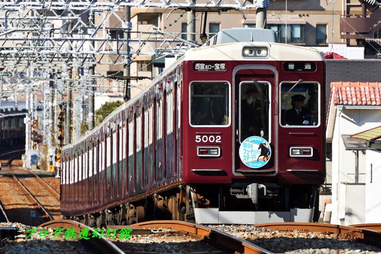 おとといの日曜(12/17)、阪神競馬場でGIの「朝日杯フューチュリティステークス」が開催されました。最寄り駅の仁川駅がある阪急今津線では、GI恒例のヘッドマーク付き列車が運転されました。前週にもGIレースが開催されており、2週連続2種類のヘッドマーク掲載です。前の週のマークは残念ながら記録できませんでしたので、おとといは張り切って出かけてきました。 西宮北口駅から宝塚駅の間にある撮影ポイントで今年、わたくしのお気に入りになったのは宝塚南口駅と逆瀬川駅の間にある上り勾配です。これを望遠レンズでギュッと圧縮する。上りきったところの線路に沿って列車がモッコリ盛り上がる構図がわたくし的には好きなアングルなのです。 以前訪れたのは日の長い季節だったので気づきませんでしたが、太陽の位置が低いこの季節には、正午過ぎの時間帯であっても線路際の建物の影が伸びています。その影が列車の正面にかかるのを避けようとすると、その直前でシャッターを切らなくてはならず、今ひとつモッコリ感に欠けるカットになったのは残念です。 撮影地:阪急宝塚南口~逆瀬川 今日12月19日は、国際南南協力デー、日本人初飛行の日、熟カレーの日だそうです。