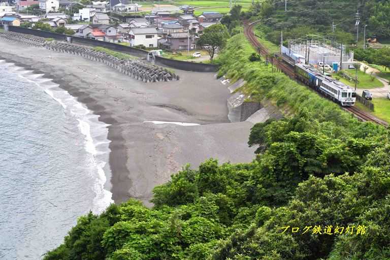往路の終点、窪川に着いた「志国土佐 時代(とき)の夜明けのものがたり」は、それほど時間をおかずに復路の列車としてスタートします。 往路と復路で停車駅は異なるのですが、往路で交歓風景が繰り広げられた海辺の駅は、往復ともに列車が停車する駅の一つです。往路で駅進入の様子を撮影しましたので、復路は少し離れた場所から海を入れて俯瞰しました。 「夜明けのものがたり」は、駅に到着する時や発車する際にミュージックホーンを鳴らします。地元の人たちがお見送りの鳴子を打ち鳴らす中、ミュージックホーンを奏でてゆっくりと発車していきました。 今日7月24日は、劇画の日、芥川龍之介が睡眠薬自殺(河童忌)(36歳、1927年)だそうです。 【前面展望】乗継企画 JR四国(キハ185系むろと1号)・阿佐海岸鉄道 徳島→牟岐→海部→甲浦 [ (鉄道) ]