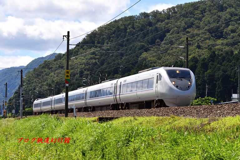 北陸新幹線が敦賀まで延伸したあとの変化を視野に入れ、特急「サンダーバード」や「しらさぎ」を今のうちに再度記録しておこうと過日、福井の手前まで行ってきました。今回は今庄から鯖江あたりの区間にポイントを置いて転進しました。 「サンダーバード」や「しらさぎ」に使用されている681系、683系には非貫通型と貫通型の2種類がありますが、わたくし的には非貫通型のデザインが好きです。「しらさぎ」は681系ですが、「サンダーバード」の大半には683系が使用されています。その意味では少数派と言える681系がやってきました。 リニューアルされた車体の象徴である青のラインが印象的です。車体サイドに描かれた、どことなく火の鳥を連想してしまう「雷鳥(サンダーバード)」のデザインも、個人的には、なかなか良いなあと思ったりするわけですよ。 盛夏の午前中、真っ青な空が広がっています。列車の位置を少し下げ、青空を多めにしたアングルにしてみました。 撮影地:北陸本線王子保~南条 今日7月26日は、福岡市の地下鉄1号線開業(1981年)、ポツダム宣言記念日、幽霊の日(東海道四谷怪談初演)、日光の日だそうです。 ビコム ワイド展望::683系 特急サンダーバード 富山~大阪 [ (鉄道) ]