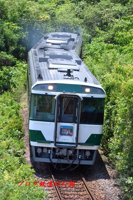 高知県から徳島県内にもどり、安佐海岸鉄道と牟岐線の結節点である海部駅を通過した際、駅から程ないところにある鉄橋のそばにはカメラを構えたギャラリーが点在していました。列車はまだ海部駅を発車していない! そう思い、急遽鉄橋の向こうに車を停めた瞬間、エンジンのうなり音が接近してきました。あらら! 走り去るキハ 185 系の後姿を見送るだけになりました。気を取り直して再スタートです。