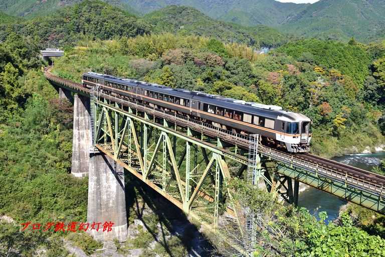 三重県エリアの紀勢本線で、数ある鉄道情景のうち、おそらくトップ 3 の 1 つに入ると思われるのが三瀬谷駅と滝原駅の間にあるアンダートラス橋です。上流からの水は、橋梁の近くにある三瀬谷ダムでせき止められて放流されるため、橋梁が架かっている場所は深い谷になっています。そこを駆け抜けていく キハ 85 系 特急「南紀」の姿は文句なしに鉄道絶景です。