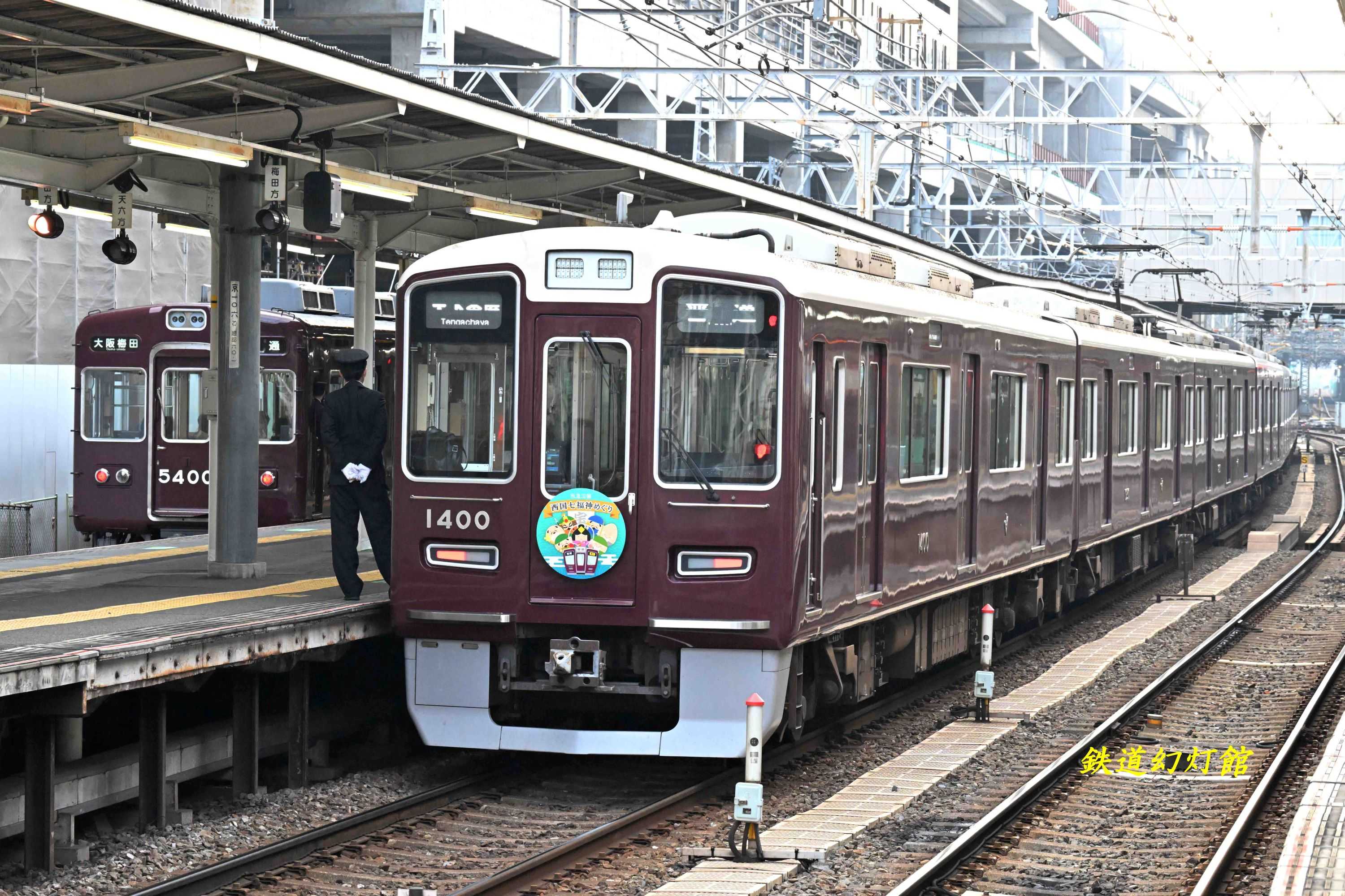 毎年、正月恒例の阪急干支ヘッドマーク以外に、もう一つのお約束は西国七福神めぐりヘッドマークです。これは、数年前にデザインが一新されたのですが、それ以降は同じものが掲出されています(前後で色違いになります)。今年はこのヘッドマーク掲出車を京都線の淡路駅で撮影しました。