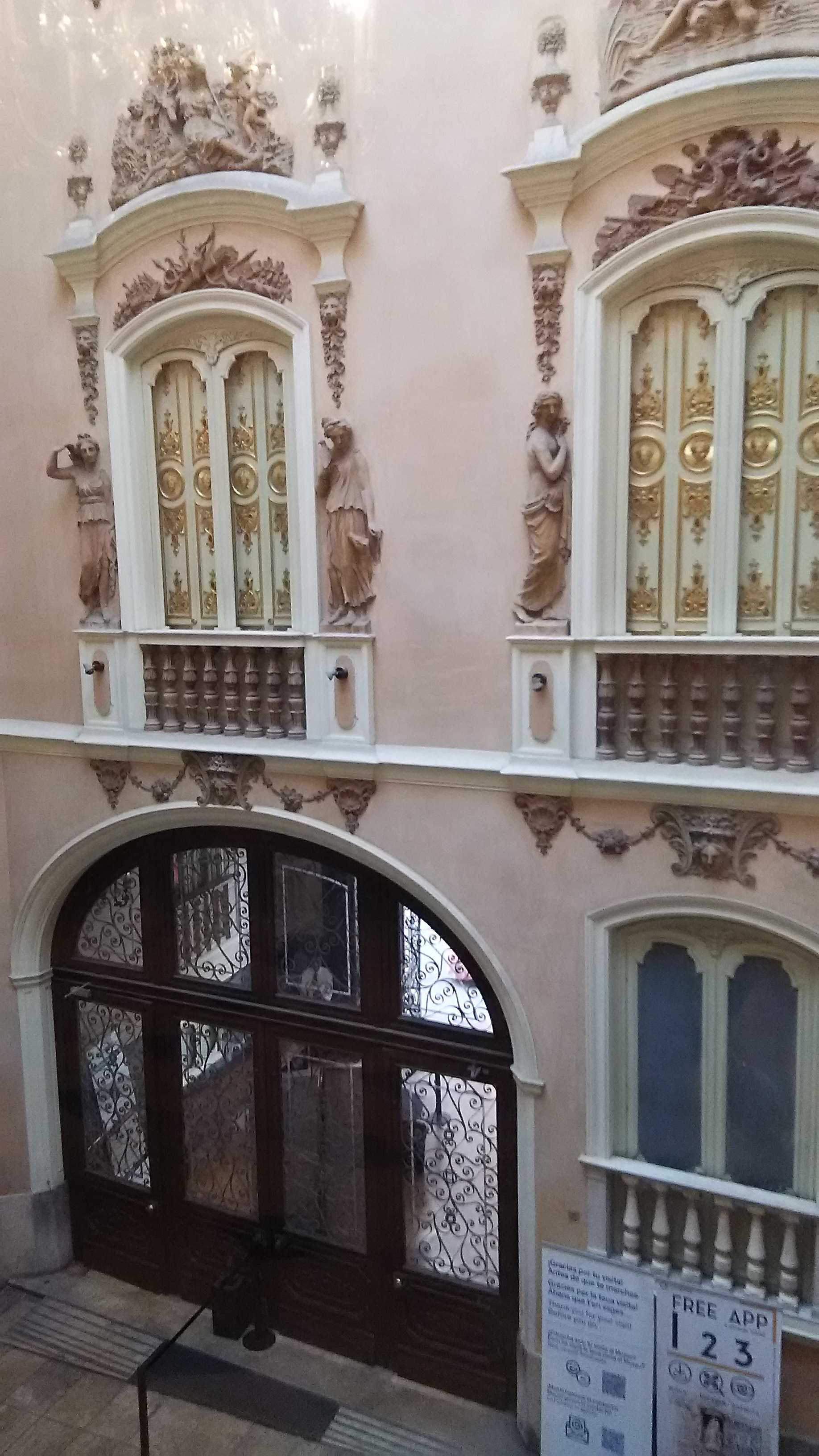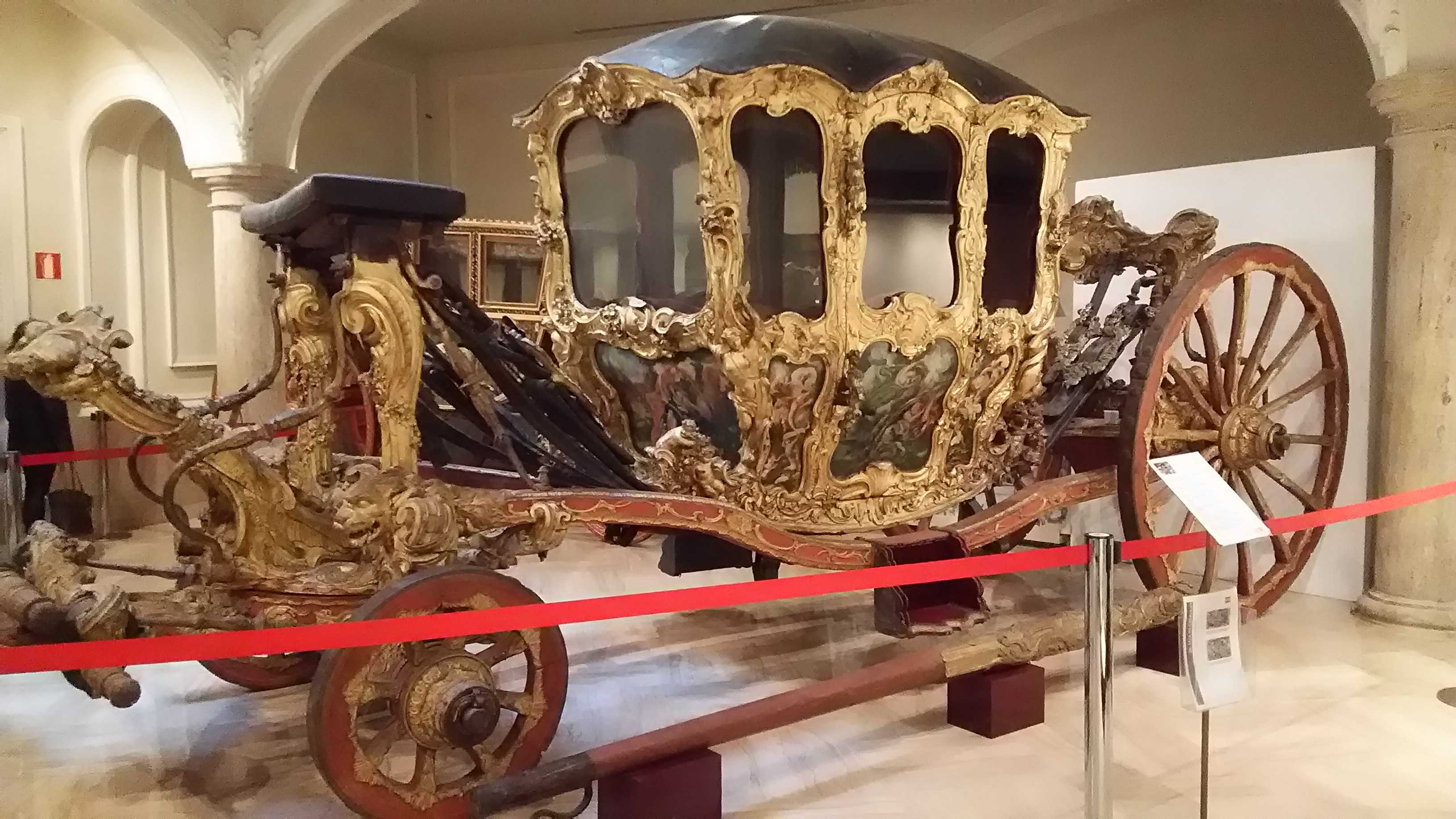 市庁舎前広場を通って博物館へ向かいます。16:30頃に再度「ゴンサーレス・マルティ国立陶器・装飾芸術博物館」へ到着。外壁の装飾がかなり賑やか。博物館でもあり、「ドス・アグアス侯爵」の宮殿でもあるらしい。「侯爵」の宮殿か~と納得の雰囲気です。この博物館は彫刻がごちゃごちゃいっぱいの外壁なので発見しやすいです。色んな様式が組み合わされているとのこと。オリジナルはゴシック様式だったらしい。・・・・・ゴシック?全部本物の窓かと思いきや「イラストの窓」もあり!入って直ぐ辺りの階段。レッドカーペットが敷かれていて柱も壁も見事な造りです。流石「侯爵家」の宮殿だわ!ドレス姿で写真を撮ってみたい…建物に入って直ぐのホール入場券はこのホール入って右手にあります。豪華なシャンデリアまである!「ニンフの四輪馬車」王様が乗っていそうな豪華な馬車。1753年制らしいです。装飾が凄くて大きく見えますが人が乗る部分は小さい印象でした。個人的にはこちらの馬車のほうが落ち着く…ハウ○の荒地の魔女が乗っていた駕籠みたいなやつ。裏側からみた駕籠。全面に絵が描かれています。「陶器」博物館なだけあってたくさん展示されています。白地に青の器たち。落ち着く色合いです。ゆるきゃらみたいな陶器の置物まで!それにしても派手豪華な馬車だこと…どんな乗り心地だったんだろう?