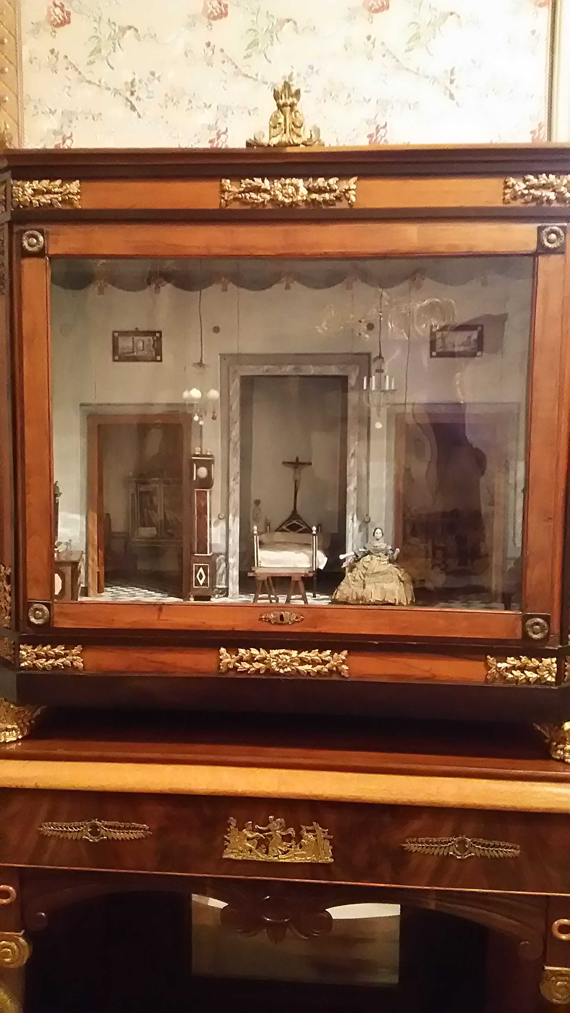 博物館、子ども部屋のドールハウスの写真がまだあったのでアップします。本日はバタバタしていたので写真数枚ですみません(-_-;)ドールハウスの造りはかなり精巧でした飾ってあるケースも台も豪華✨鍵がかかるようになっています。お人形遊びとかしたのかな?飾ってあるのを眺めるだけだったのかな?台所もきっちり作りこまれています。メイドのお人形さんが現代風なのが不思議な感じ…部屋の主人のお人形さんは当時のものかな?本棚にちゃんと本が入っているのが凝っていていいな~ベッドも現実にありそうな感じです。手前の机のようなものは機織機に見える…