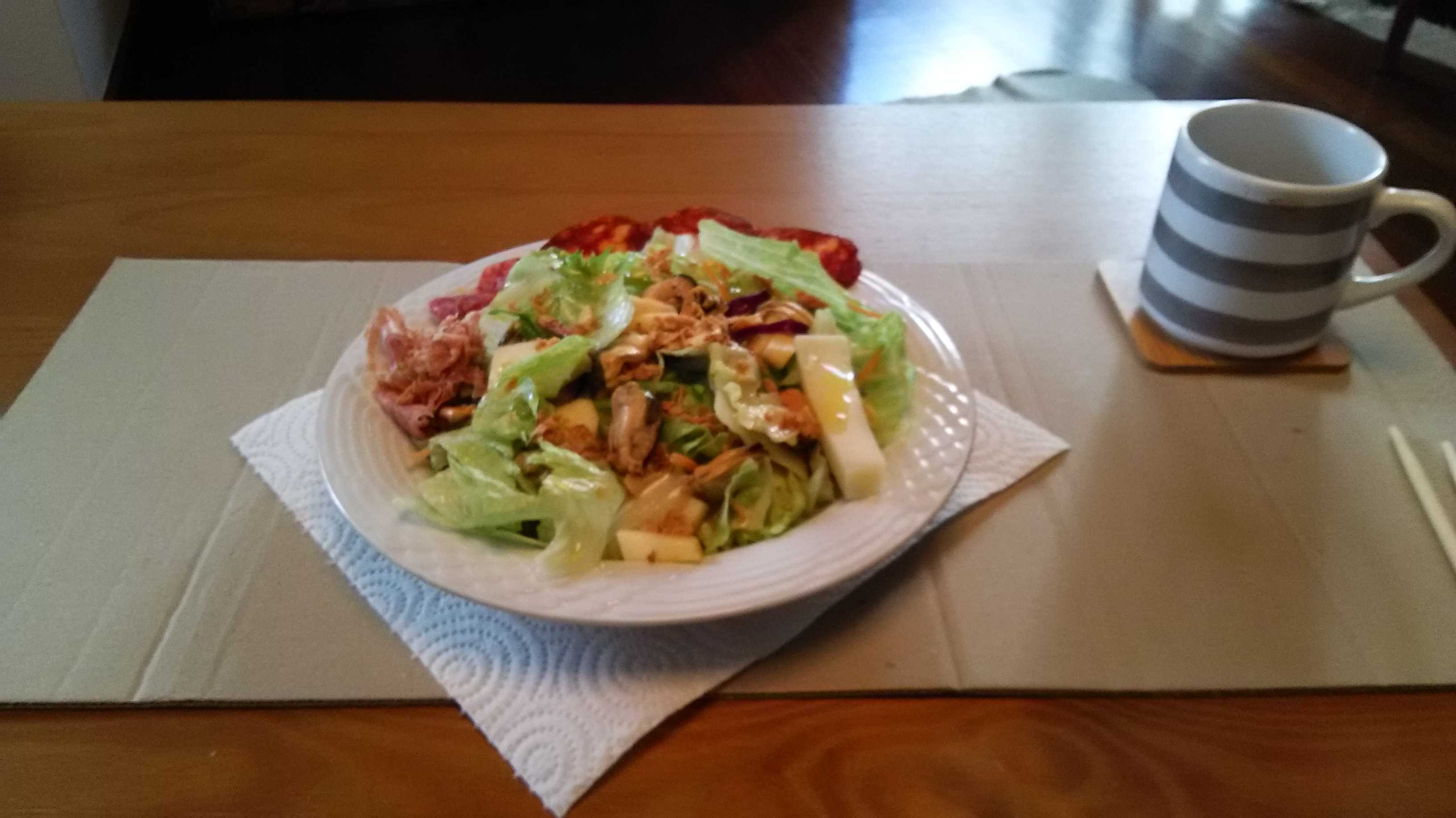 バルに一人で行ったらお断りされちゃったのでアパートにて晩ごはんです。スーパーで購入した野菜とウェルカムセットでもらったハムやサラミにチーズ、缶詰のムール貝、フライド玉ねぎをたーーーっぷり使ったサラダ!テラスでのんびり食べればよかったのですが時差ボケがまだ解消されていない頃でそこまで頭が回らず「ホタテとエビのソテー」我ながら美味しく出来たなーと自画自賛(笑)中央市場で買った魚介を使っています。この時点でランチョンマットがあるのに気がついていなかったので、机を汚さないようにダンボールを敷いてその上にキッチンペーパーを置いてあります塩コショウ、バター、白ワイン、にんにくで味付けです。ロジャスクレメンテ市場で買ったムール貝を使った「ムール貝のガーリック炒め」アヒージョ用の器があったのでそれに盛り付けましたウェルカムセットで頂いた白ワイン。2日ほど冷蔵庫に入れていたのでよく冷えています♡辛口で海鮮によくあいます。グラス1杯いただき、先程のホタテのエビのソテーやムール貝にも使いました。3/10の朝ごはん前日市場で買っていたトルティーヤ(オムレツ)とおまけで付いていたバゲット。トマトはスーパーで買ったものです。うっかり焼いているのを忘れてカチコチになった目玉焼き。トーストに乗せて「ラピュタパン」にすればよかったなーと後で思いました。