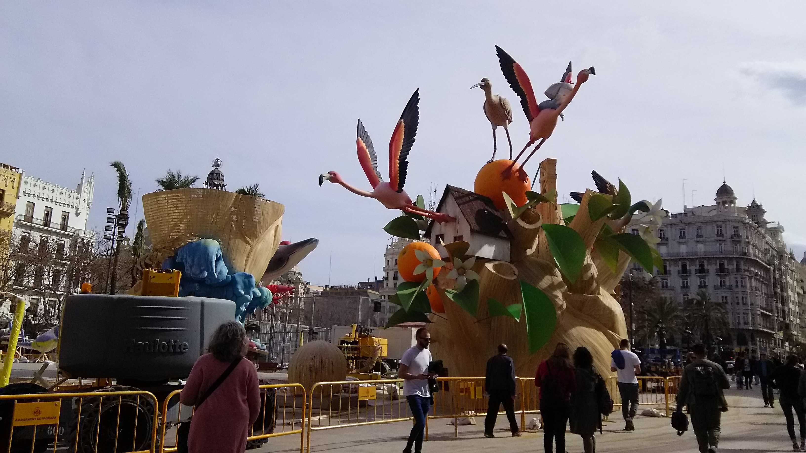 2度目の「マスカレータ」(爆竹&花火のイベント)見学です。3/10で28℃は何度観ても違和感ありまくりだわーお祭り期間中は毎日14:00からイベントやっているので見る機会はかなりあり!毎回凄い人の数なので貴重品等荷物に要注意!!打ち上げが終わりそうになると方向転換して有るき始める人々が増えます完全に終わった途端に皆さん一斉に移動を始めるので流れに逆らうのは結構たいへん…(^o^;)14:18頃、やっとこさアパートまで戻ってきました。印のついているところが利用したアパート。最上階のお部屋で7階(実質8階)、テラス付き。14:59頃からテラスにてお昼ごはんです。ムール貝たっぷりサラダ海老とホタテのパスタ(グルテンフリーのとうもろこしパスタ利用)スペインでのランチタイムは14:00~16:00くらいなのでレストランもバルもどこもいっぱい。お一人様お断りされちゃうことが多いので要注意!※バレンシアで3/10はお祭り期間中ということもあって余計に人が多いかと思われますがアパートなので自分のペースで好きに過ごせるのでこれはこれで楽しいので問題はありません。バーベキューができるスペースとコンロもありましたが一人で使うのはちょっと…16:00頃までのんびり過ごしてから再出発です。再び博物館を目指して進んでいたら広場に囲いができ、ファジャス人形が置かれ始めていました。とりあえず運んできて、とりあえず置いてある…という感じで関係者らしき人はいません。完成期限日の16日までまだ日があるからでしょう。爆竹&花火イベントの時はあんなに人だらけだった広場もすっかり落ち着いた雰囲気…焼き栗販売の屋台がちらほらありました。バケツみたいな入れ物に入ったカラフルな綿菓子も売っています。焼き栗を買おうかなーと思ったのですがお店の人とお客さんの会話が盛り上がっていたので声をかけそびれまして買っておりません^^;何故か通りすがりのお子様に顔見されております市庁舎前広場を通るほうが博物館に行きやすいのでまたまた通ります。イベント中は撤去されていたカフェやレストランの椅子や机が出てきてにぎやかになっている!
