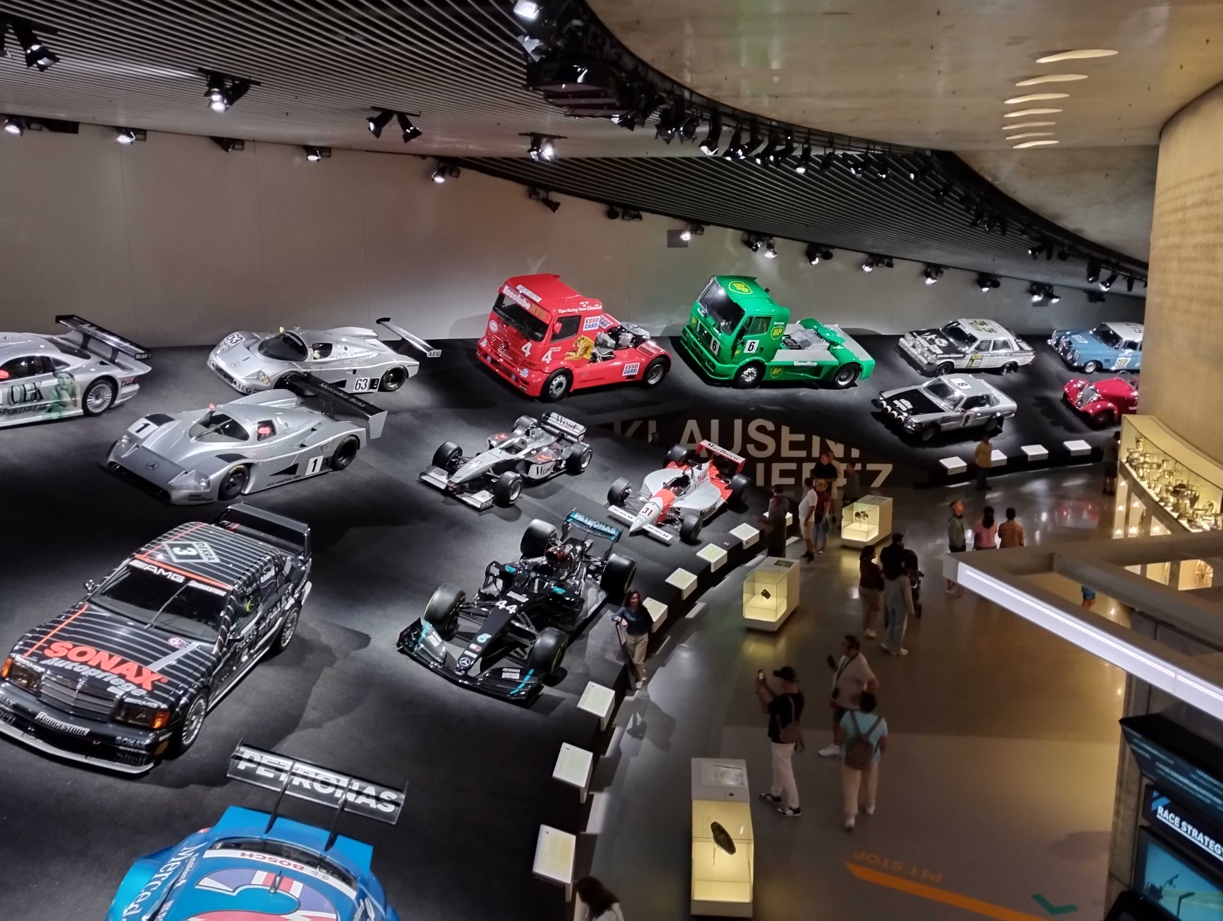 ドイツ・シュトゥットガルトにある、メルセデス・ベンツ博物館。16:30からの入場だと半額の8€で入れるが…閉館の18:00までの1時間30分で展示物見学、ミュージアムショップ見学等々済ませなければならないので若干慌ただしい見学になるかも。18、19世紀の車体を主に見学して早めに動いても結構時間がかかったので、ベンツ好きのファンの方は16€かかっても早めに行ったほうが良いかと思われます。車の手前には現役当時の写真と説明文があり。但しドイツ語…この車体のみ天井ギリギリ。どうやって搬入したのかは謎…ベンツマークの付いたバス。ベンツ社製だから当然だが見たことなかったのでとても新鮮丸みを帯びたこちらのバスのほうが個人的には好きです。博物館の窓から見た外の景色。高速道路を「速度制限?なーにそれ?」と言わんばかりの猛スピードで車が走っている…お偉いさんが乗っていそうな車体だ。現代に近づくにつれてどんどん「ゴツい」デザインが増えてきている気がする。最初の頃の自転車のようなものから変化を見てきたので面白い!ジブリ作品に出てきそうなフォルム。全体がほぼ赤で統一された車体なので凄く目立っただろうなと思いつつパチリ📷️博物館を降ってきて、最後の階あたりからスポーツカーの展示がメインになってきて雰囲気が変わってきた。近代のスポーツカーエリア。50年以上は前だろうなと思われるものまで展示されていたのにはちょっとビックリ懐かしのアニメで紹介されていた「マッハGoGoG◯」という作品を瞬時に思い出した。