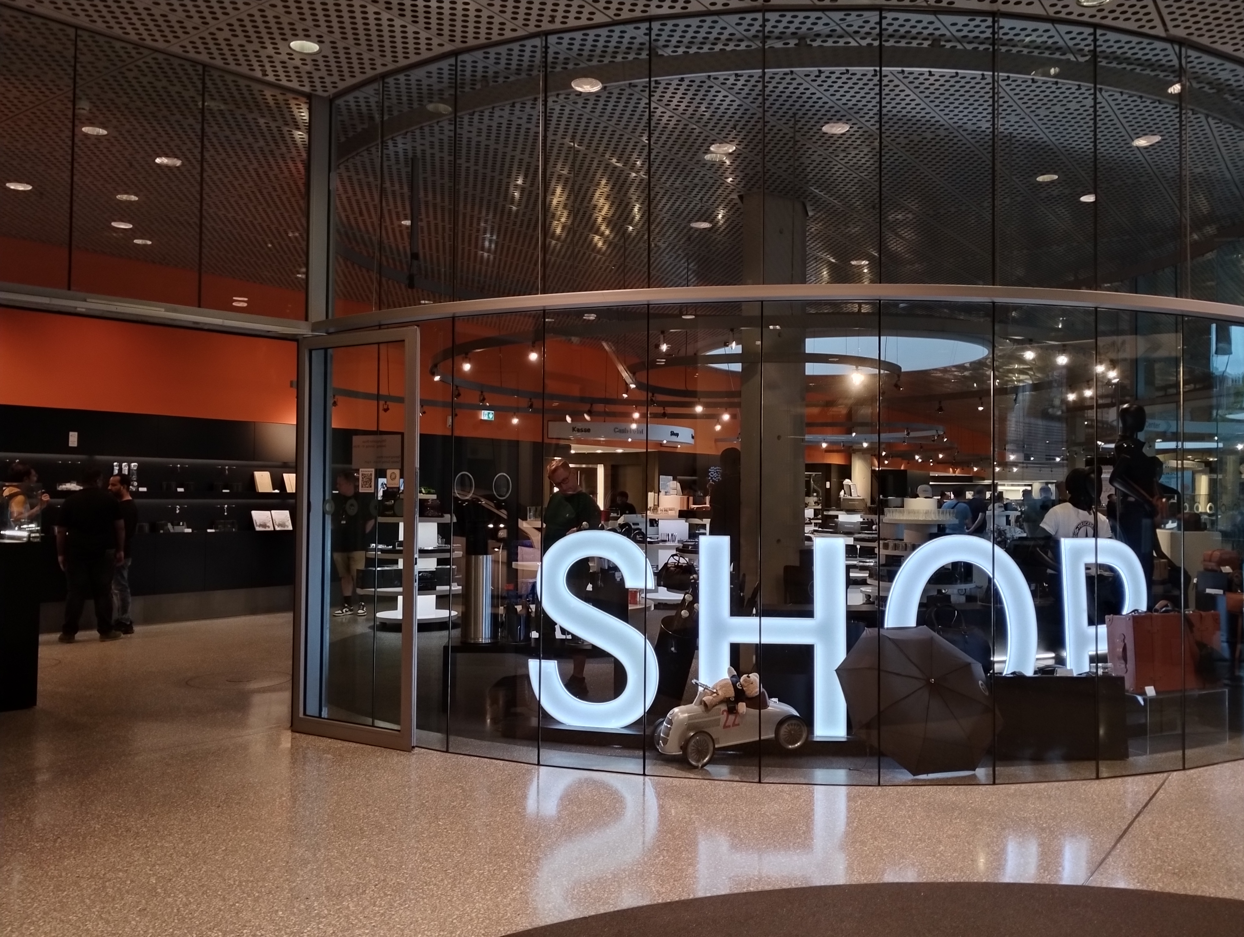 ルートは違っていたが折角なのでメルセデス・ベンツ・ショップを見学。日用雑貨や諸々ベンツグッズが所狭しと並んでいる。マグカップやTシャツやお洋服まである。サッカースタジアムにあるグッズショップみたい。ショップの奥の方にはカフェも有り、既に博物館の見学を終えたらしい人々がくつろいでいらっしゃる。メニューには当然のようにビールがあった。他にも体験ブースのような場所もあり少し遊んでみた。遊びすぎて博物館の見学時間が足りなくなってはいけないので控えめに。カフェの中心部には竹林があって日本にいるような気分に。この時間になると少し肌寒くなってきていて更に空を黒っぽい雲が覆っていた。なんとカーショップまで併設!!最新のベンツがズラーッと勢揃い!残念ながらこの日9月8日(日)はカーショップが既に閉店済み。※もしくは日曜日は休みかも?シャッターの隙間からスマホを差し込みパチリ📷️同じく撮影する観光客の方々有り。旅行用スーツケースやカバンまである。勿論ベンツマークがきっちり付いているものばかり。更に驚いたのはベンツ製のベビーカーまであったことベビーカー専用コーナーまであって少し触れてみた。頑丈そうな作りで車輪大きめで安定感もある。石畳に車輪がとられることもなさそうだ。お値段は…まぁ…お察しください💦これらを見ていると今に車椅子も並ぶんじゃなかろうか?という思いが湧き上がる。メルセデス・ベンツの技術で作られた車椅子なら頑丈で長持ちしそうな気が…。ショップを出てトイレに行った際に見つけたロッカールーム。大きな荷物だとここに預けるように言われるらしいがスーツケースは無理みたい。