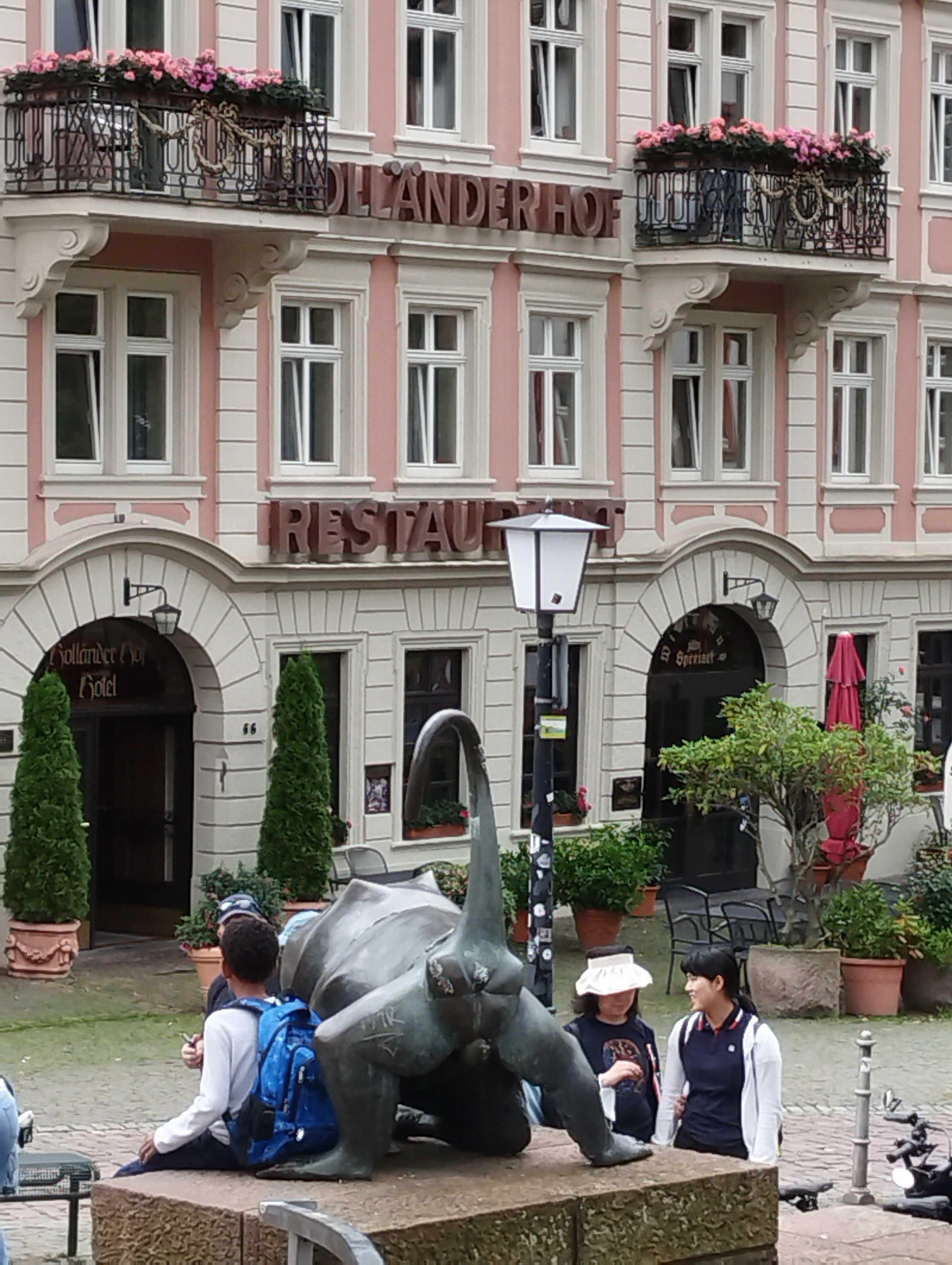 ハイデルベルグ城から徒歩で住宅街を移動。歩いていたら偶々ケーブルカーの駅の横に出てきていた。ホテルへ移動中の日本人観光客とすれ違い。石畳をスーツケースで移動は大変ですよね…と心のなかでエールを送る。11:57頃には「Kornmarkt」へ到着。お城から見えていた広場だ。お城を見ながらお昼ごはん。食べていたら足元に鳩さんがワラワラ寄ってきておねだりされる💦少しだけお裾分けしたらバクバク食べていた。ハイデルベルク城が見えることで有名な場所らしく、団体さんがやってきては観光していた。宿泊候補だったホテルを発見したのでパチリ📷️中央駅から一本で来られるし観光地ど真ん中だし、効率の良い観光には最適の場所だ。聖霊教会から徒歩圏内のホテル。荷物が少なかったらこちらを利用していたかも。駅前のアパートホテルはチェックイン時のトラブルが尾を引いておすすめ出来ない…ハイデルベルク広場。周辺にはカラフルな建物が多いしお店も多い。ハウプト通り。ここの通りの両側には飲食店が特に多かった。広場にある「聖霊教会」入場料は無料。シンプルで穏やかな気持ちになれる教会だった。お気持ちいれがあった。お昼時だからか教会内には殆ど人がおらず貸切状態。こちらでろうそくを買わせていただきました。お祈りをさせていただいてから外へ。グーグルさんで調べていた観光地巡りスタート!