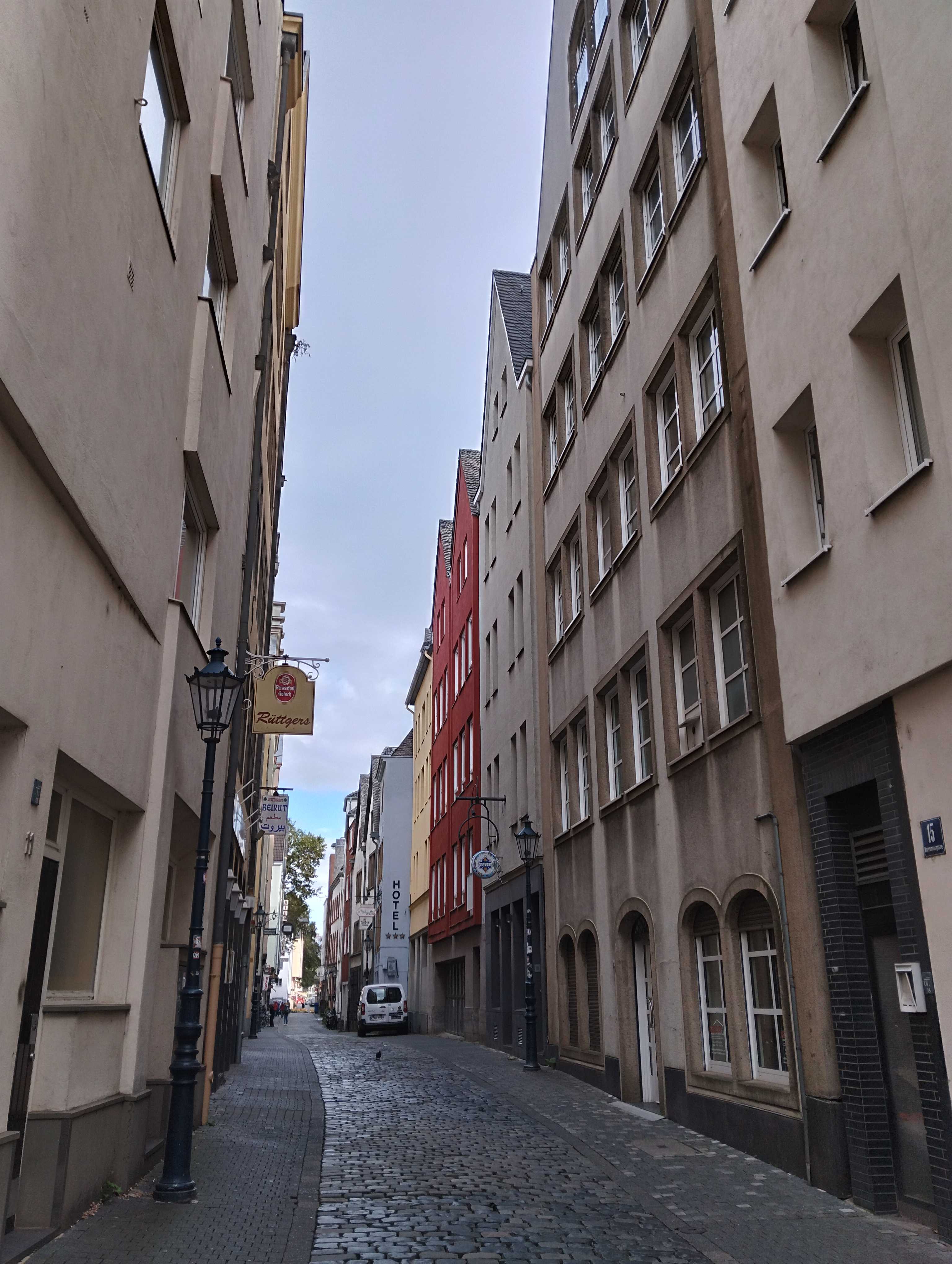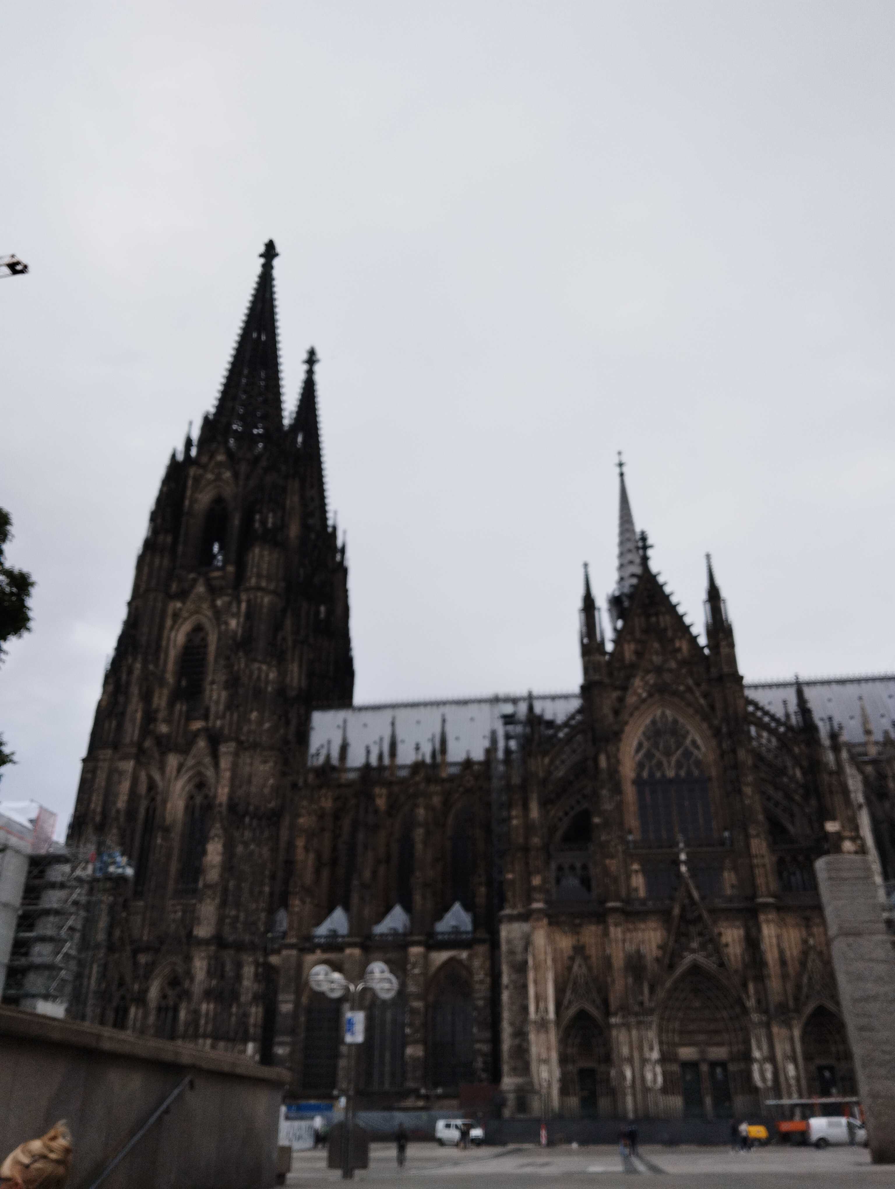 2024年9月11日㈬、テレビ番組で紹介された居酒屋さんへ行ってからホテルへ戻りうたたねをして気がつくと日付が変わっていた(^o^;)流石に深夜も深夜なのでシャワーを浴びてから再度お布団へ( ˘ω˘)スヤァ…7:40~50頃、教会の鐘の音で起こされて動き出す。前日電話帳カツレツを完食して、ビールも飲んでやや食べすぎ飲みすぎだったので朝はスムージーとカット・パインで済ませた。9:30頃ホテルを出発して周辺を観光することに。先日は人でいっぱいだった大聖堂もこの時間はまだ人が少なかった。大聖堂の隣りにある「考古学博物館」の外観を見学して、外にある史跡を見学。うろうろ歩いていて、振り返ると滞在中のホテルが見えた。周辺が工事中なので建物がよく見える。「Alter Markt(歴史的市場広場)」カラフルな外観の建物たくさん集まっている。お店がたくさんあるが10:00くらいでは殆ど開いていない。広場にある史跡では記念撮影をしている人が多かった。中にはドレス姿で撮影する人も!「Jan von Werth‐Brunnen」(ヤン・フォン・ヴェルトの噴水)地下駐車場の出入り口。階段のみだった。地図を見ないで散策していたら「聖マルティン教会」の裏側に辿り着いていた。まだ開いていなくて入れず。水曜日は開門が遅いみたい。ウロウロしていたらライン川沿いの辺りに出てきていた。ホテルやレストランが川沿いにたくさん並んでいる。レストランは殆ど開いていなかったが、ホテル併設のところは開いているところもあったようだ。立ち止まってかばんをゴソゴソしていると大体寄ってくるハトさん。おねだりの圧が強い…