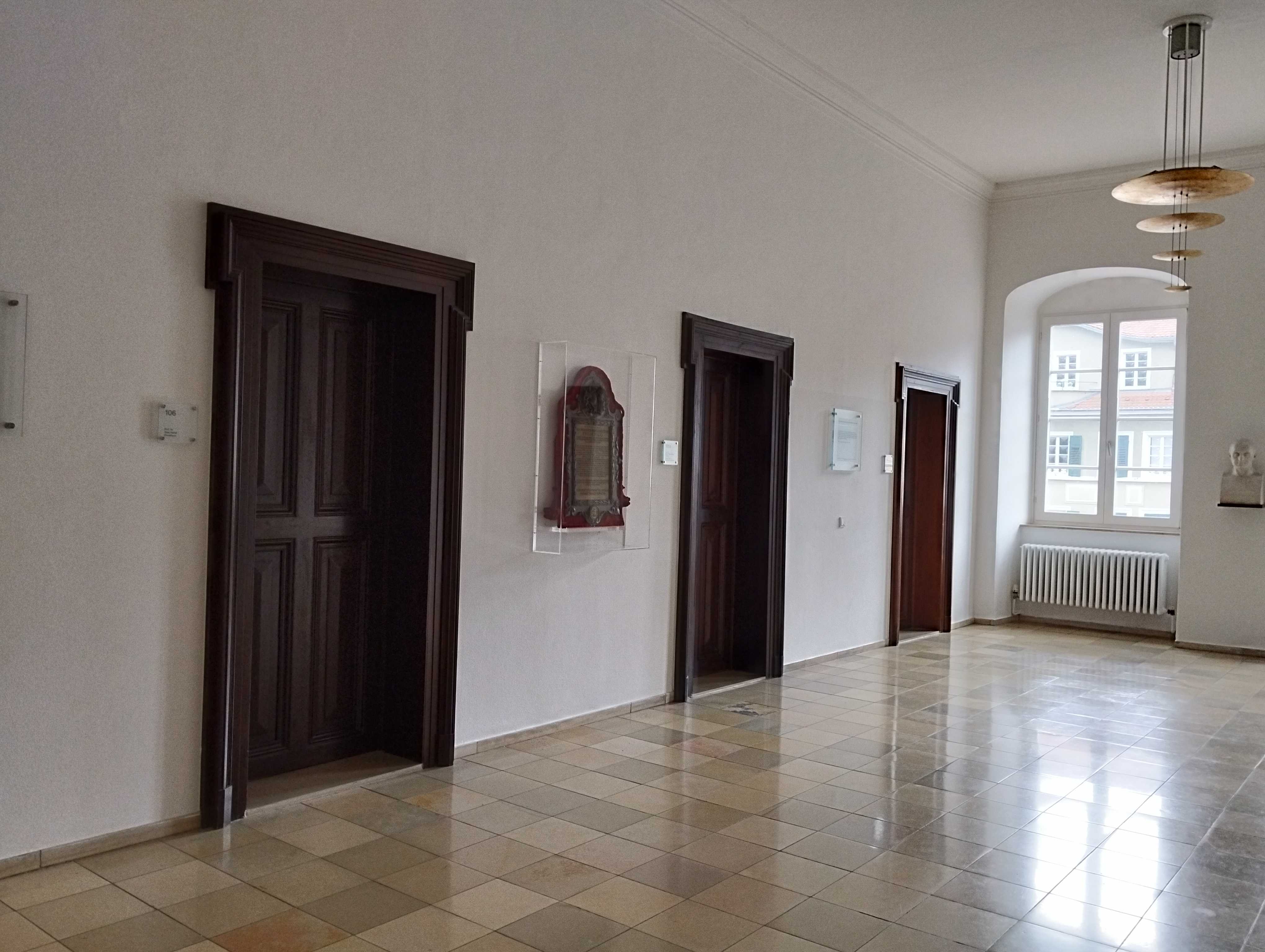 ハイデルベルク大学の「学生牢」で見学後には「ミュージアム」へ15:10頃到着。ミュージアムを見学して見学可能な大学敷地内を見学。大学の大ホールである「グレートホール」見学できるかどうかは不明だったが、近くを通ったらホールの扉が開いていた。メチャクチャぼけていますが入って直ぐのあたりです。凄く味のある色合いを入り口を抜けて中へ。なんという味のある大ホール!1886年に大学創立何周年かの記念につくられたらしい。正面だけでなく、天井にも絵画があり芸術面でも素晴らしい…コンサートも開けそうな雰囲気だ。正面から振り向き、出入り口付近を見ると上の方にパイプオルガンらしきものもあるようだ。椅子に座っても良いみたいでちょこっと着席。壁沿いの席にも座ってしばしホールを眺めたり座って天井を見上げたりした。立ったまま見上げると首が痛い^^;大学の卒業式や入学式もここで開かれていたのかな?名残惜しかったが出入り口を占めるそうなのでホールを後に。このときは偶々開いていて見学できるようになっていたが出入りできないときもあるみたい。