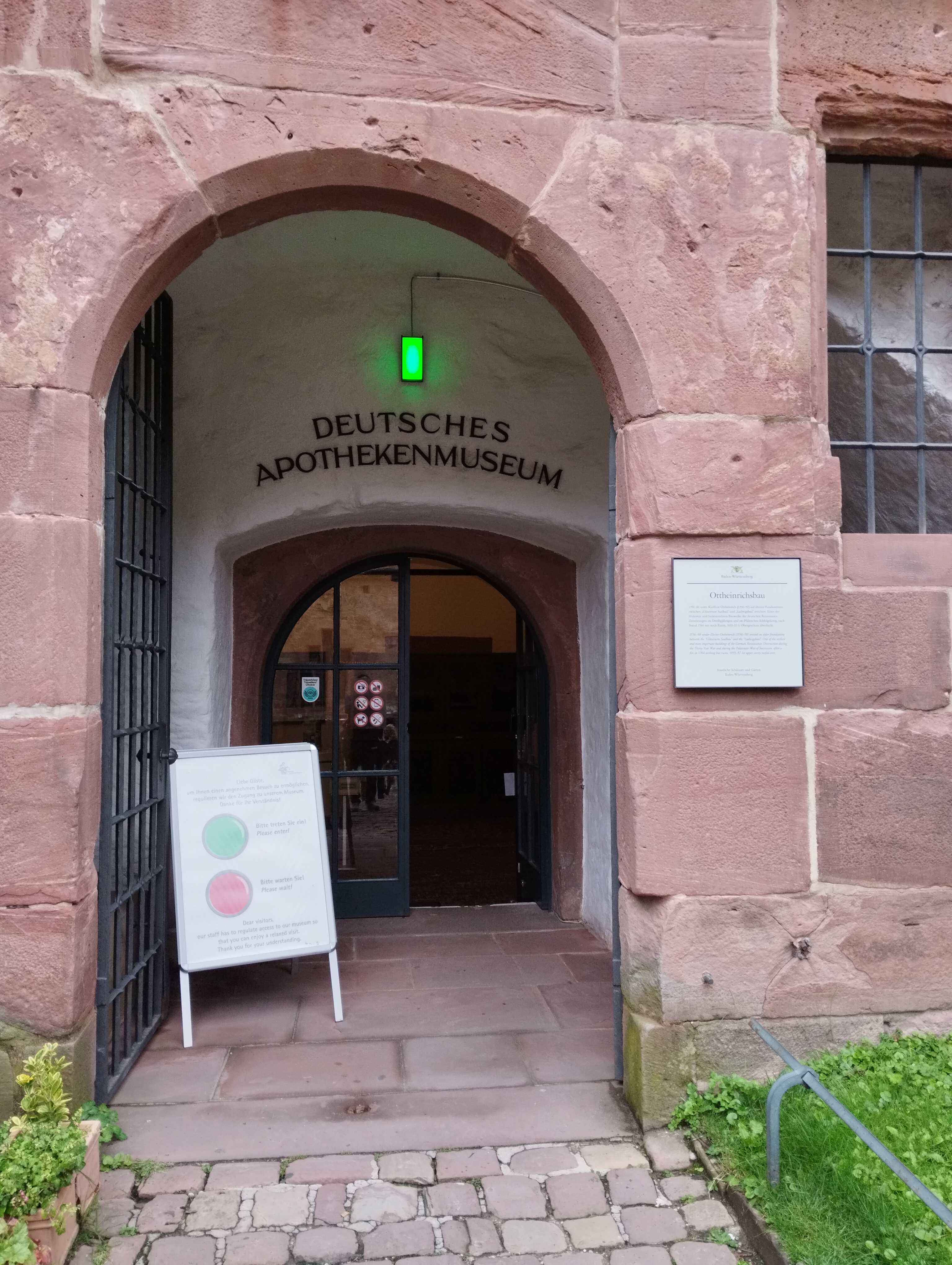 ハイデルベルグ城の「大樽棟」とお城からの絶景を堪能して次の見学先へ。「ドイツ薬事博物館」へ。テラスから戻って左手すぐに入口があった。入り口は小さめ。入口付近にあった昔の調合器具。ゲームのアトリエシリーズを真っ先に思い出すくらいハマっています。入り口でチケットチェックをしてもらい入場。感じの良い受付のお姉様でした。フラッシュは駄目だけれど写真撮影はOKということをお姉様に確認してから進んでいく。当時使われていたらしい薬棚や秤や器具がたくさん展示されていてテンションうなぎのぼりだ↑↑薬学の本屋フラスコなんかも飾ってある。この薬棚が色合いもデザインもめっちゃ好みで先に進めない^^;主に16世紀から19世紀までの品が展示されているようだ。稼働しているところを見てみたいなーと思いつつ眺める器具たち。博物館はハイデルベルグ城内にあるので堀もよく見えたし「シェッフェルテラス」もよく見えた。博物館内の入り口や扉が何だか魅力的でこれでもかというくらい写真を撮っていた私(^o^;)こちらのタイプの薬棚も良いな。年代の説明もあったけれど解読できずじまい…ケースの一つ一つに薬草名が書いてあるっぽい。昔使われていた薬の瓶やケースもたくさん展示されていた。瓶、缶、陶器、ガラス製色々。動物の写真のようにリアルなイラストもあった。図鑑的なものだったのかも。後、薬になる生き物の紹介だったり…未開封の薬なんかもあって面白い。所々にこういった肖像画まで展示されていた。城主やそのご家族だったのかな?