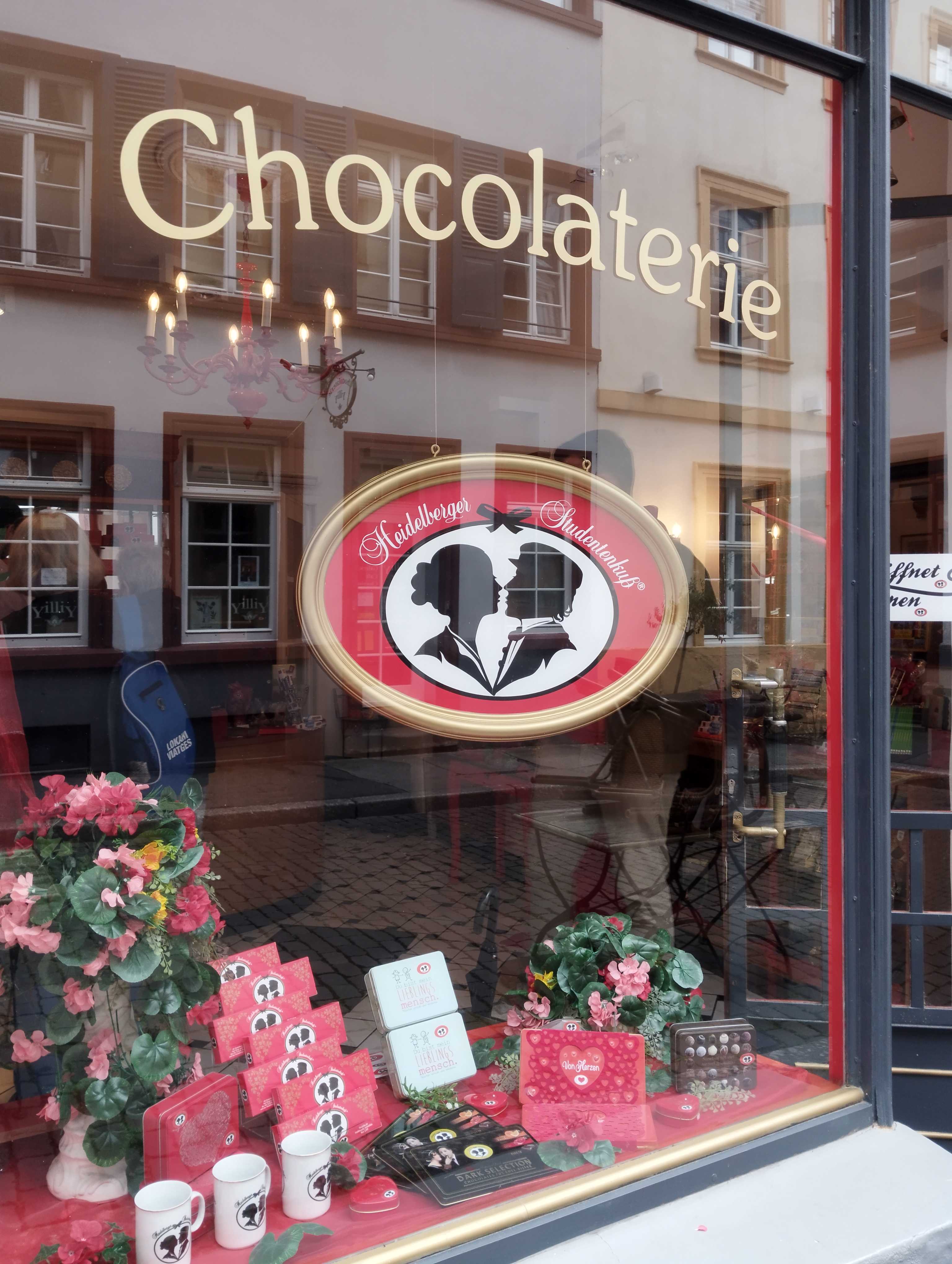 ハイデルベルク城の見学を終え、広場で軽く食事(おにぎり)をしてから散策開始。まず聖霊教会へ行ってから、「学生のキス」という名前のチョコが有名な「Knosel」(クネーゼル)というチョコレート屋さんへ。人気のチョコレート屋さんらしく店内にそこそこお客さんが。空くまで少し待つ。店内はカラフル。店員さんに写真を撮っても良いか尋ねてOKをもらってから店内撮影開始。レトロなレジに目が行く。店内は当然チョコレートのあまーい香りで食欲をそそられる。レジ前にはチョコが一個単位で売っていて、お試し感覚で買えるようになっていた。お土産用のカラフル・ラッピングの商品やお子様向けの可愛らしいイラストのチョコもあった。1863年創業の老舗チョコレート屋さんとのこと。ナッツ入りのチョコもあるのでうっかり買ってしまわないように注意。アレルギーがあるとそこが大変^^;店員さんが「お土産にはこれがおすすめだよ」とアレコレ勧めてくれる。スーツケースに入れても崩れなさそうな缶入りの「学生のキス」を数点購入した。凄く観光客なれしていて接客も丁寧な店員さん。レジと一緒に撮影させていただきました。かなり年代物の骨董品レベルだが現役レジ。使うところも見せてもらったが「チーンッ」と電子レンジのような音がしていた。譲ってほしいというお話もあるらしい。可愛らしい紙袋も記念になる。お店の周辺はこんな感じ。聖霊教会から近い「ハスペルガッセ通り」にお店があるので行きやすいかと。少し進むとお土産屋さんがちらほら開いていた。お昼休みなのか、閉まっているお店もあった。読めれば古本屋さんでお買い物しても楽しいだろうな…レストランでは大体のところで無料WiFiが利用できるみたい。観光地なだけあってお値段は全体的にお高い印象。