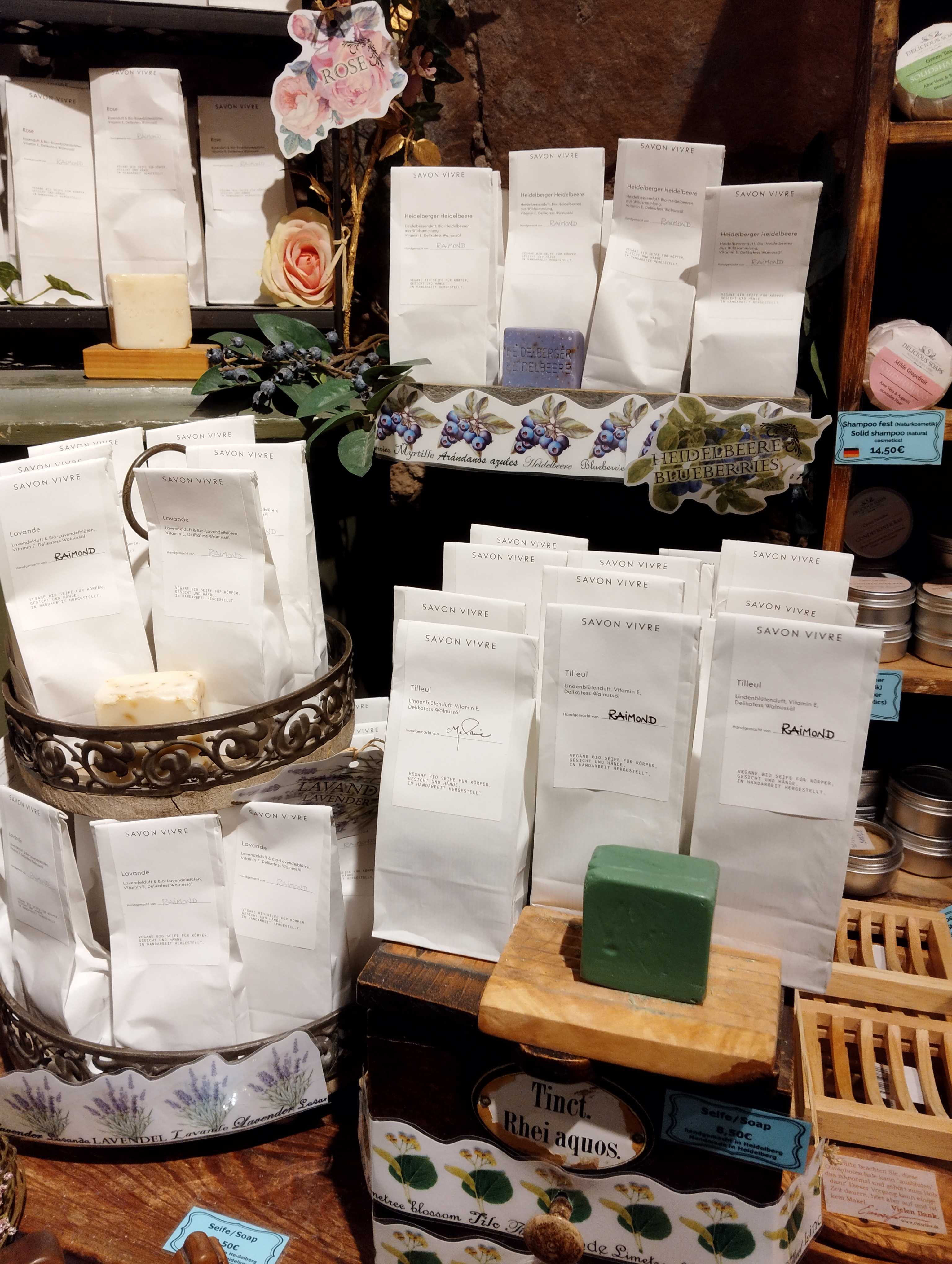 ハイデルベルグ城内にある「ドイツ薬学部」の見学コースのラストにグッズショップがあった。「薬学」というだけあってハーブ製品が所狭しと並んでいる。特に石鹸が買って帰ろうかかなり悩んだくらい良い香り。ハーブの自然な香りでショップ内全体が爽やかな良い空間だ。何故かお風呂に浮かべるアヒルさん(お医者さんや看護師さんの格好、民族衣装姿も)たちまで並んでいる。石鹸だけでなく入浴剤、御香のようなもの、オイルもあった。ハーブを調合するための器具まであってメチャクチャ欲しくなった。ここまで本格的な器具は使わないが、家でアロマオイルを焚いたり、調合して入浴剤にしたり虫除けスプレーを作ったりはしている(たまに)。一番小さいものとハーブをいれる瓶を欲しかったな…ハイデルベルグ城のほんまで並んでいてこれも欲しくなったが読めないしガマンガマン…内部見学を終えて中庭に戻ってきた。野生のインコか鴨さんらしき姿が。ハイデルベルグ城内、内部見学有料ツアーがあったので参加したかったが滞在中のツアー枠が空いておらず残念だった。枠に入れていたらこの螺旋階段の先に進めたのになー枠に入れたツアー客の方々がガイドさんに連れられてこの先に進んでいった。近くで会話を耳にしたのだが完全英語ツアーだった💦見学を終えて出てきてもレストランはまだやっていなかった。開いていたとしても100€超えのお食事を一人で行くのはちょっと…有料エリアを出る前にハイデルベルグ城内にあるお手洗いを利用したのだが、そこへ至るまでの道が何とも味のある雰囲気で中世に迷い込んだかのようだった。お手洗いそのものは現代のもので一安心(;^ω^)有料エリアを出て周辺をウロウロ散策。チケットを買ってあるので帰りもケーブルカーを利用できるのだが、折角ならお城周辺の様子も知りたいと思い麓まで歩いて移動することにした。歩き出して直ぐ、地元のおじさんが一人お店番をするお土産屋さんを発見。そこでハイデルベルグ城のマークが付いた小さなビールジョッキを購入した。観光客慣れしていて明るい接客で楽しい気分になれた。観光客が主に利用するルートとは少し違う道を進んでいると住宅街に少し迷い込んだ。お陰で地元の人しか行かないような教会があったり、可愛いお庭が見られたりしたので良い経験だった。道があると思って進んだら行き止まりだったり…教会かと思ったら一般住宅だったり…平日のお昼前くらいだったので地元の方々の姿は殆ど見えず。かなり降ってきて振り向くとハイデルベルグ城の姿が見えた。つい10数分前までいたんだなーと不思議な気持ちに。