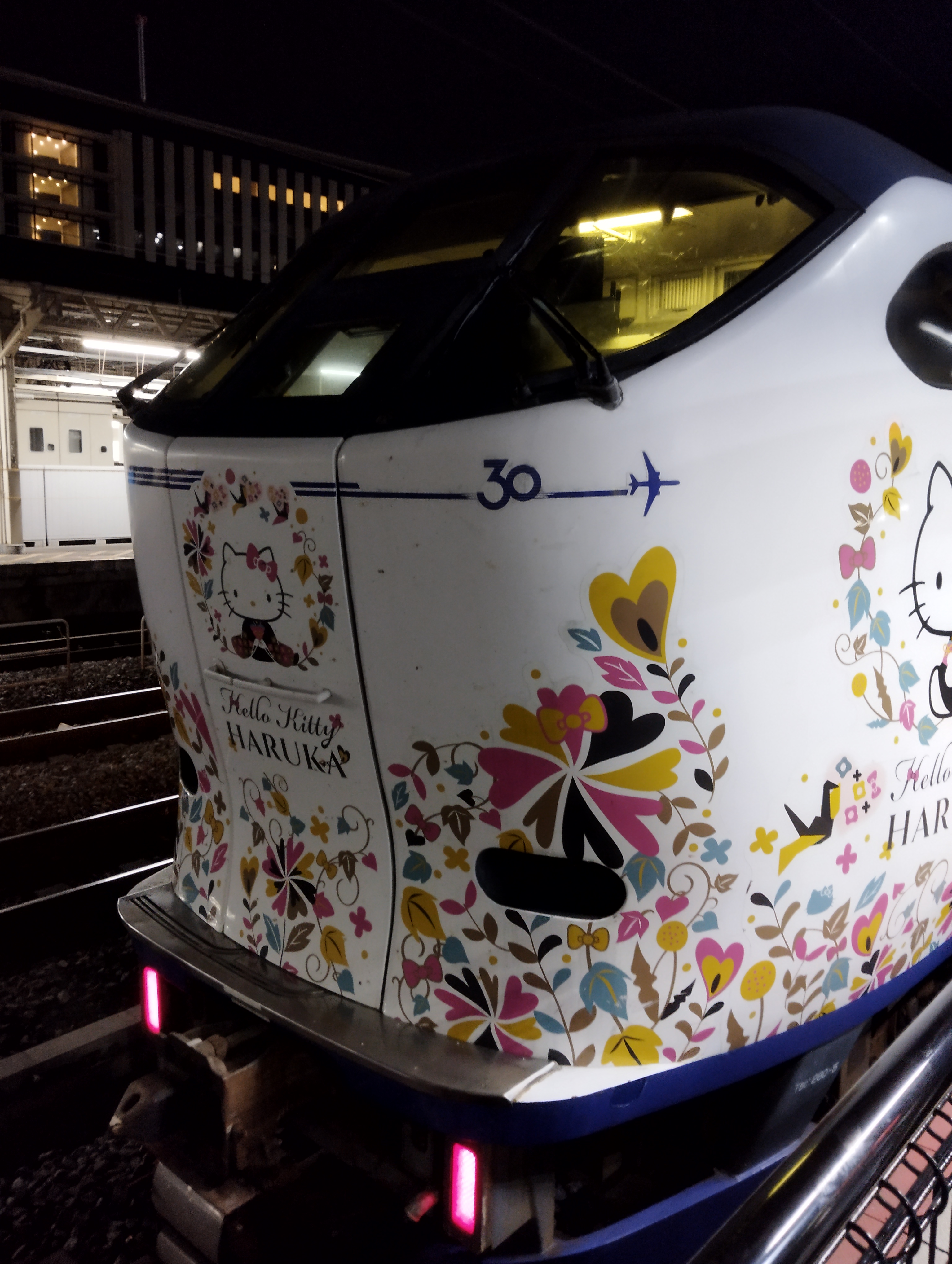 先日、関西国際空港から京都へ戻る際には行きと違い関空特急はるかを利用。自由席だと絶対混んでいるし下手をしたら乗れない可能性があると思い指定席を利用です。えらくかわいい車体。関空駅では出発まで切符売り場から7分くらいしか時間がなく写真は撮れず、京都駅に着いてからパチリ📸「はるか」の良いところは段差が殆ど無いこと。おかげさまで1つ30キロ超えのスーツケースも自力でなんとか中へ。座席はこんな感じ。扉内側まで可愛らしい♥以前乗った時は普通の車体でしたが、今回利用した「はるか」はこんな感じでした。数年振りの利用なのでコレが通常なのか、それとも特殊車両なのかはわかりません。