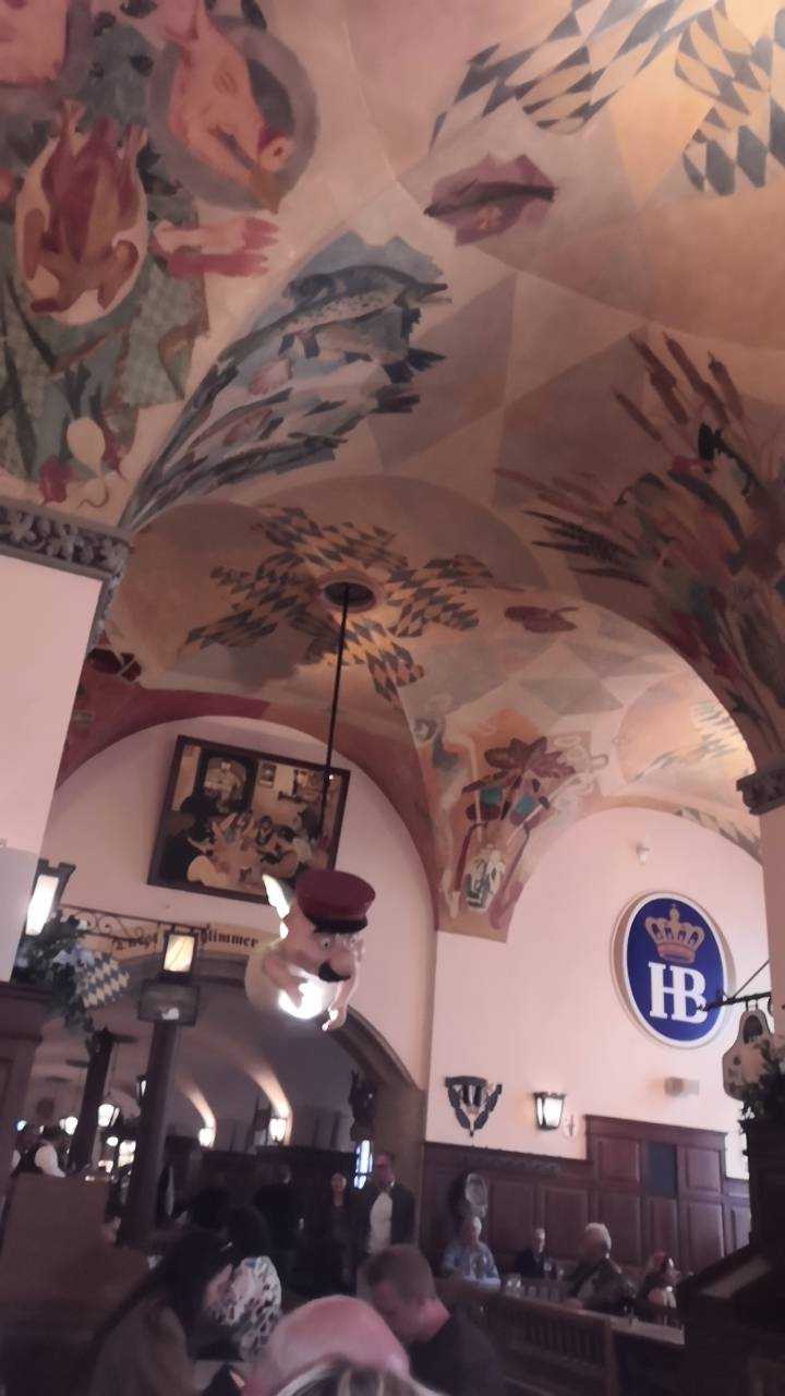姉夫妻から日本時間では深夜、現地では真昼間からビアホールの写真が送られてきました。ミュンヘン観光の定番ともいえる国営ビアホール「ホフブロイハウス」昼間ですが大盛況だったそうです。大きな白ソーセージ(皮は食べずむいて中身だけ食べる)、スープ、でっかい肉の塊とじゃがいも団子(かなり大きい)10年前にミュンヘンへ行ったときに食べたお料理はことごとくしょっぱくて喉が渇いてたまらんかったですが、今も変わらずかなりしょっぱいらしい。体調がイマイチの時には辛いくらいの濃さとのこと。ホテルの部屋で日本から持っていたインスタント食品を食べようにも、ミュンヘンのホテルは電気ポットが置いていないところが多いので大変らしい。※2024/5/23現在今回あると思って持っていかなかったから部屋で暖かいお茶やコーヒーは勿論、暖かいおかゆやお味噌汁も飲めなかったようだ。荷物は増えて重くなりますが行くときは電気ポット忘れないようお気を付けを!手元に映るビールのグラスの大きさが冗談のようにでかい💦私一人で行ったら確実に半分以上残してしまいそうなビールの量。ドイツではこれが普通なのか…※ケルンなど一部地域では200mlくらいのグラスで提供される所もあるそうです