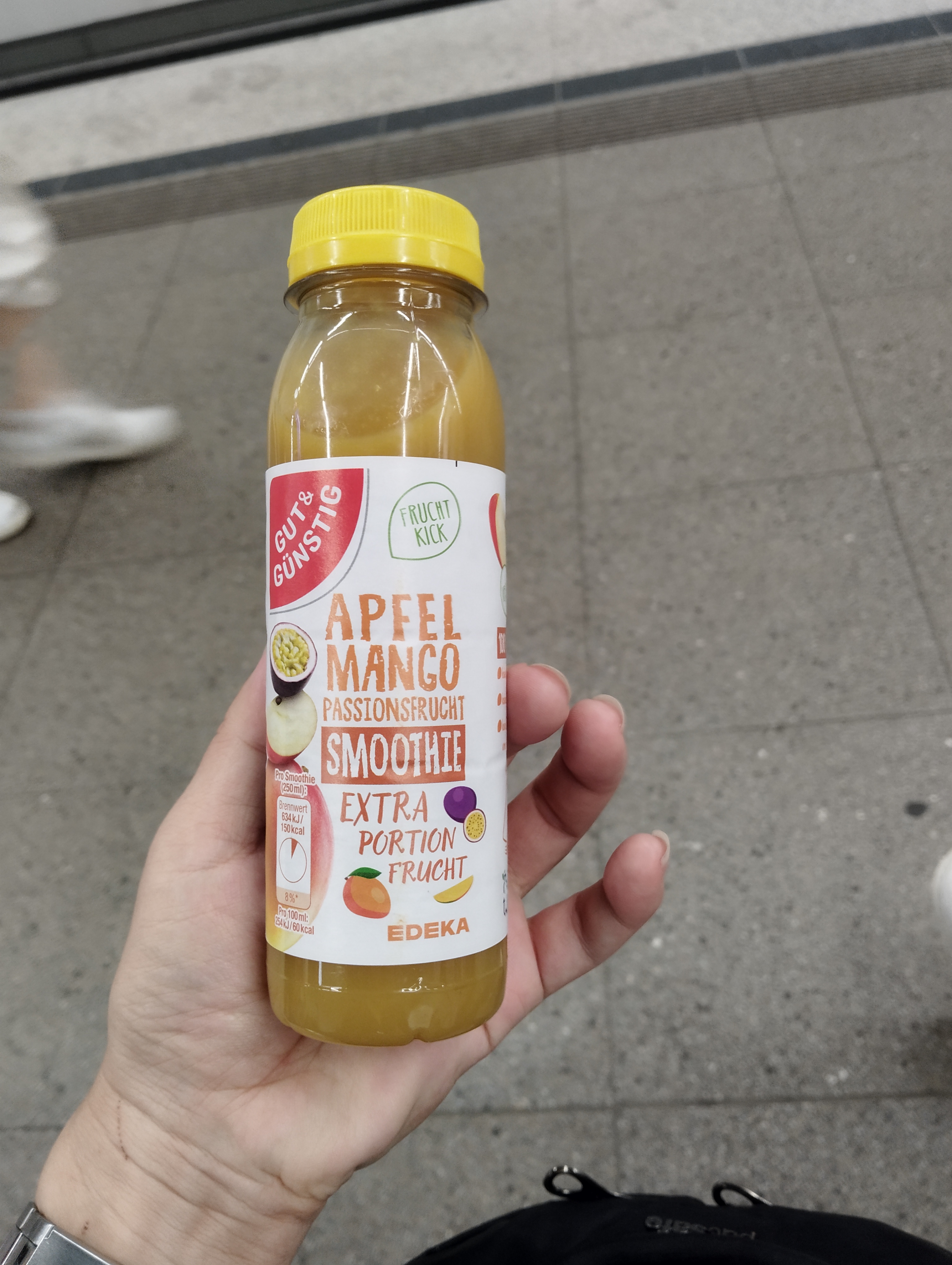 喉が渇いていたのでスーパーのオリジナルブランド・フルーツスムージーを購入。