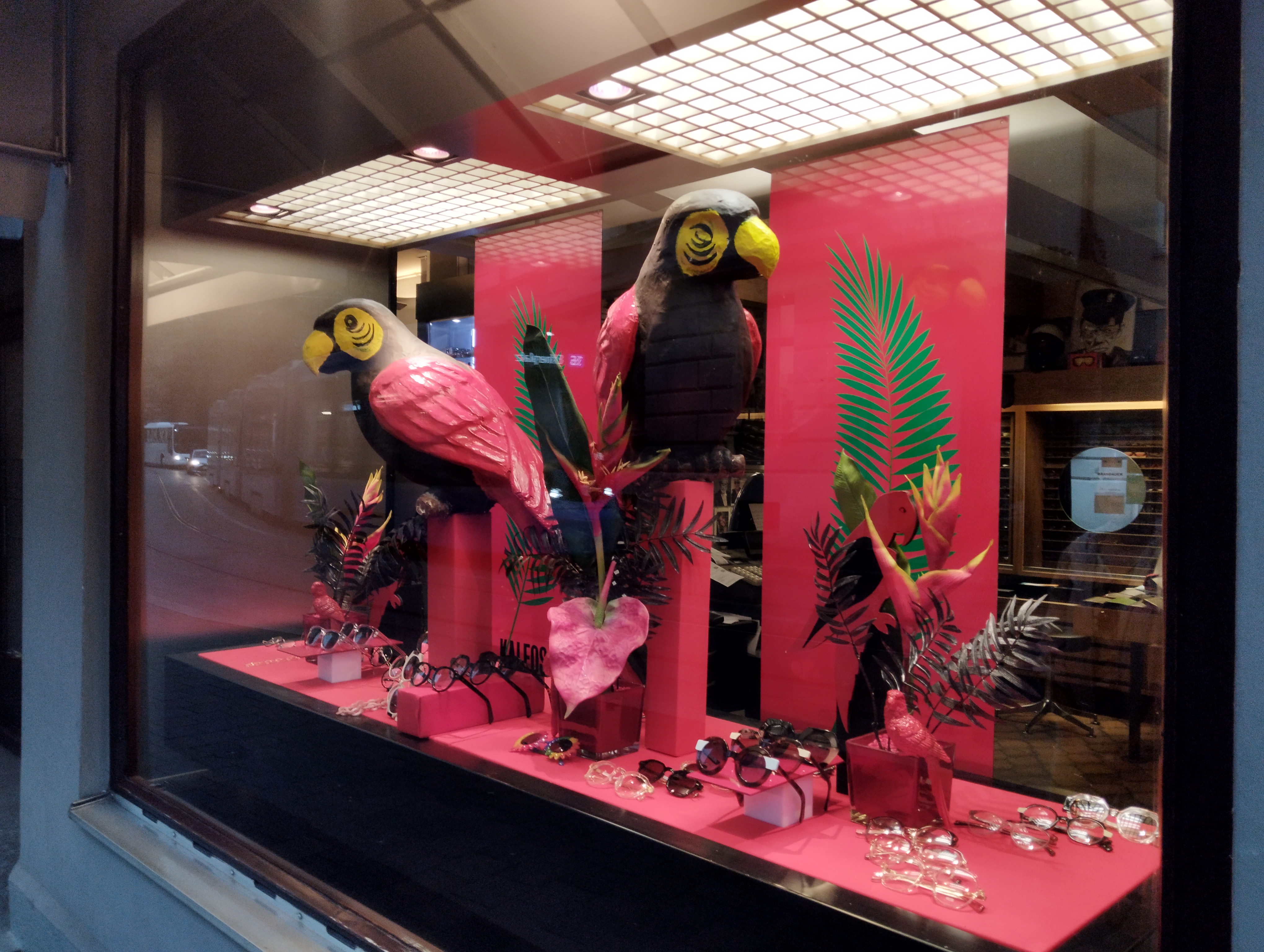 ショップのショーウィンドが大好きなインコさん仕様だったので思わずパチリ📷️