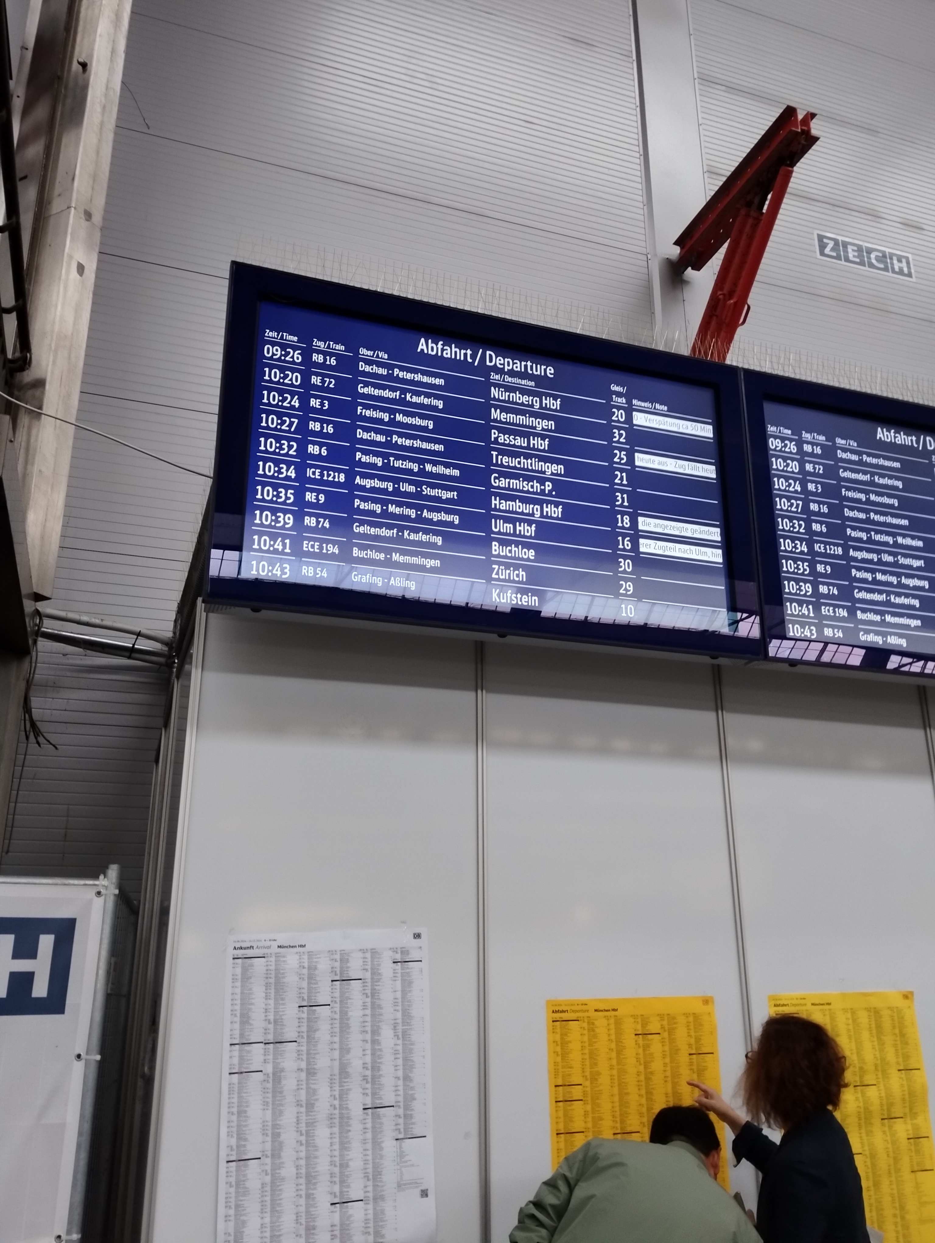 ミュンヘン中央駅は当時工事中で、簡易電光掲示板やかなり小さな文字で書かれた時刻表が壁に貼ってあった。