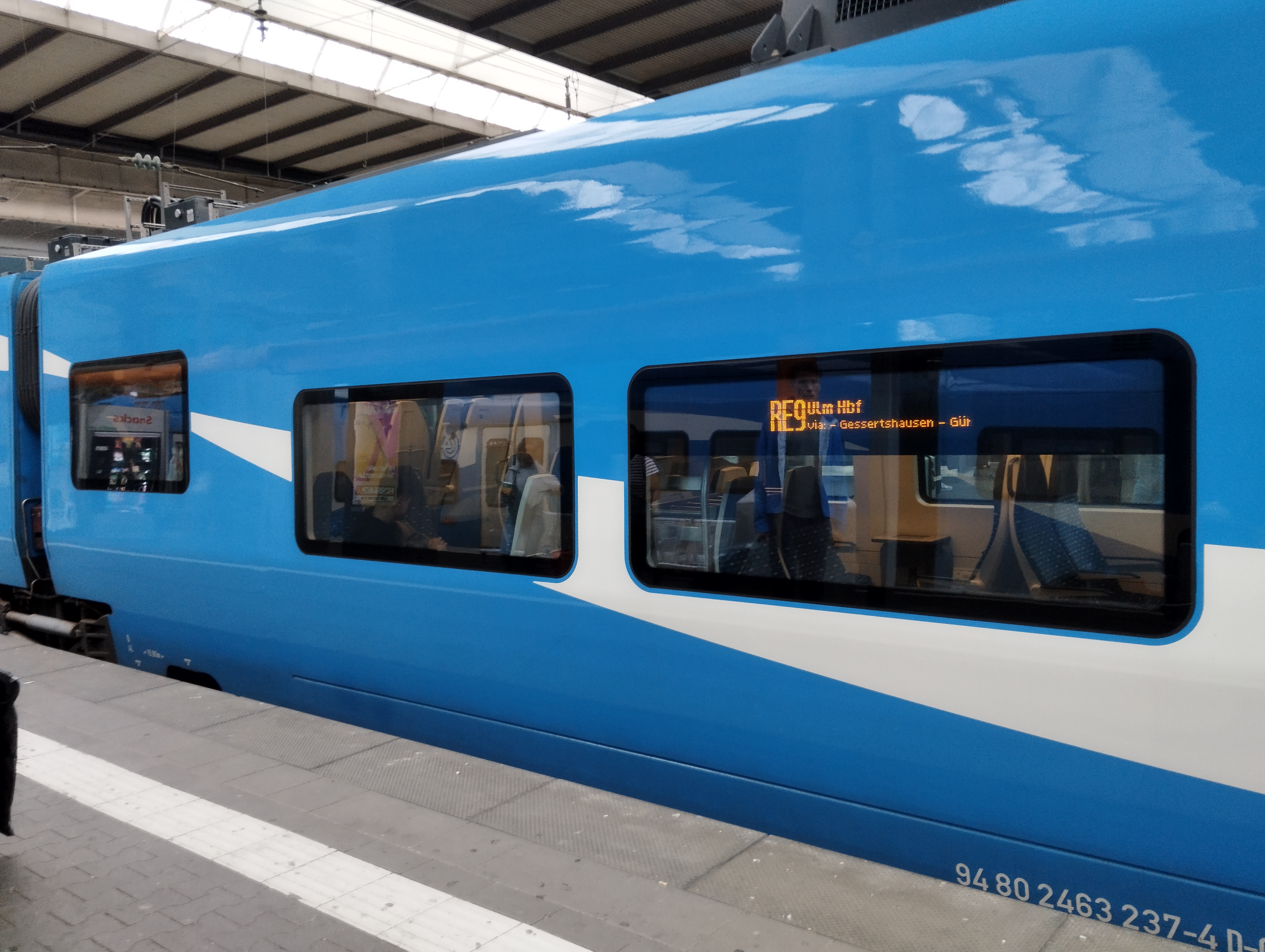 予定していたDBより早い10:35発「RE9 Ulm Hbf」乗車することに。