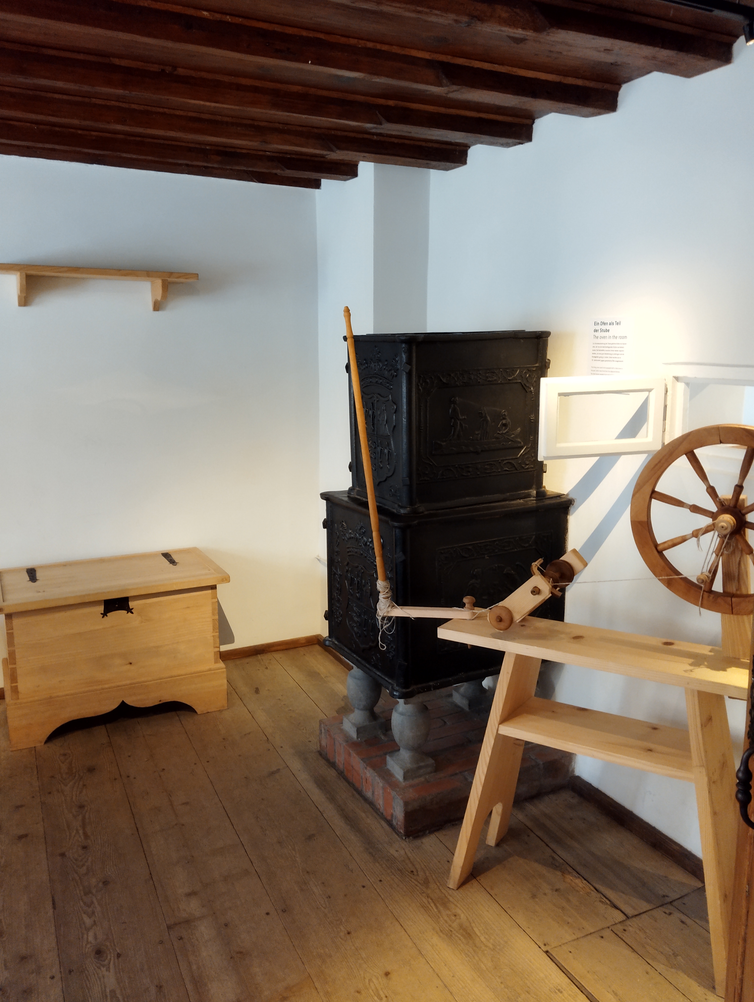 昔使われていたストーブや、復元された家具や器具が置いてあった。