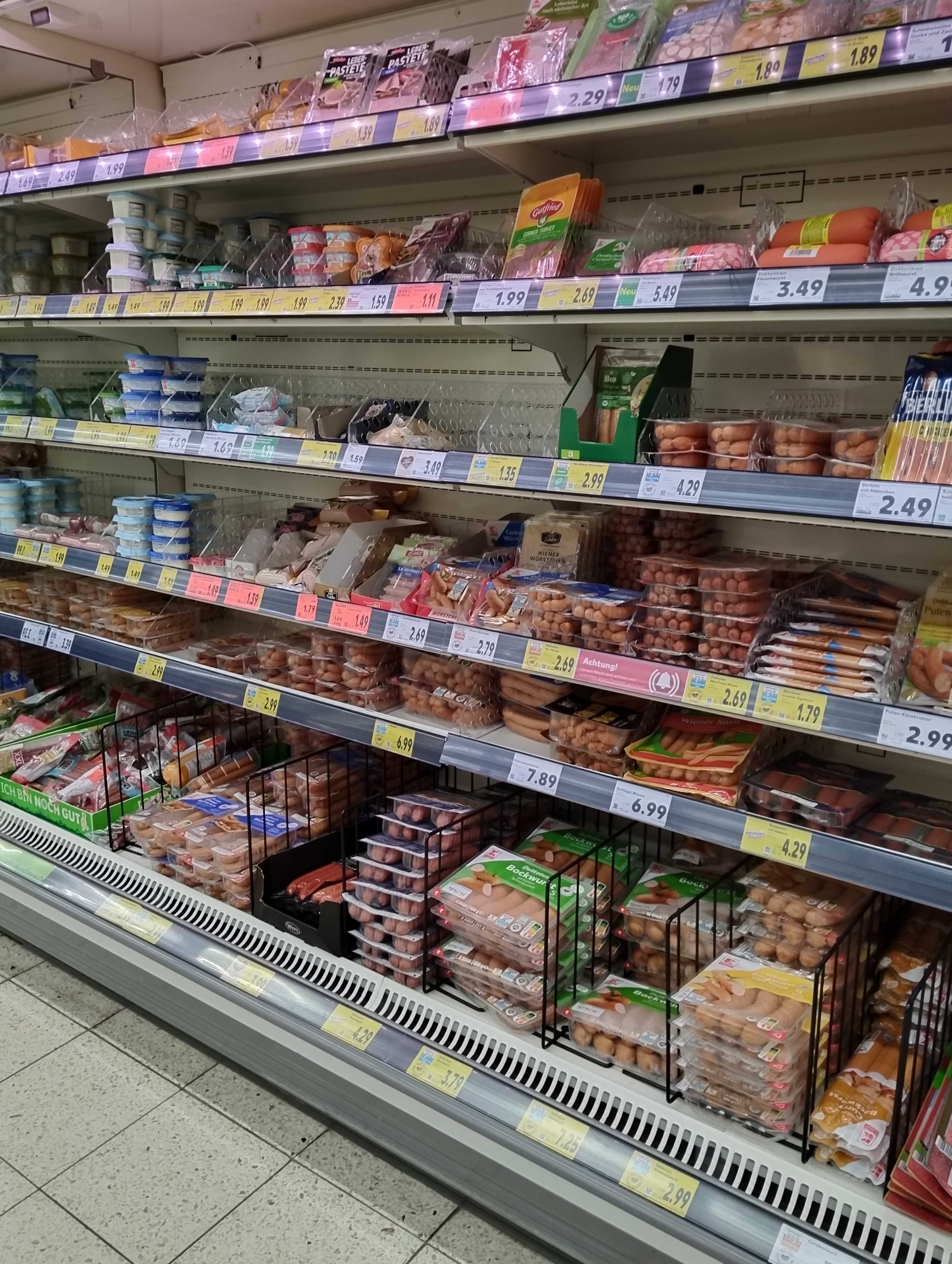 ミュンヘン、アウクスブルク、シュトゥットガルトと移動してきたが一番種類が多くて他よりかなりお買い得価格の商品が多いスーパーな印象。