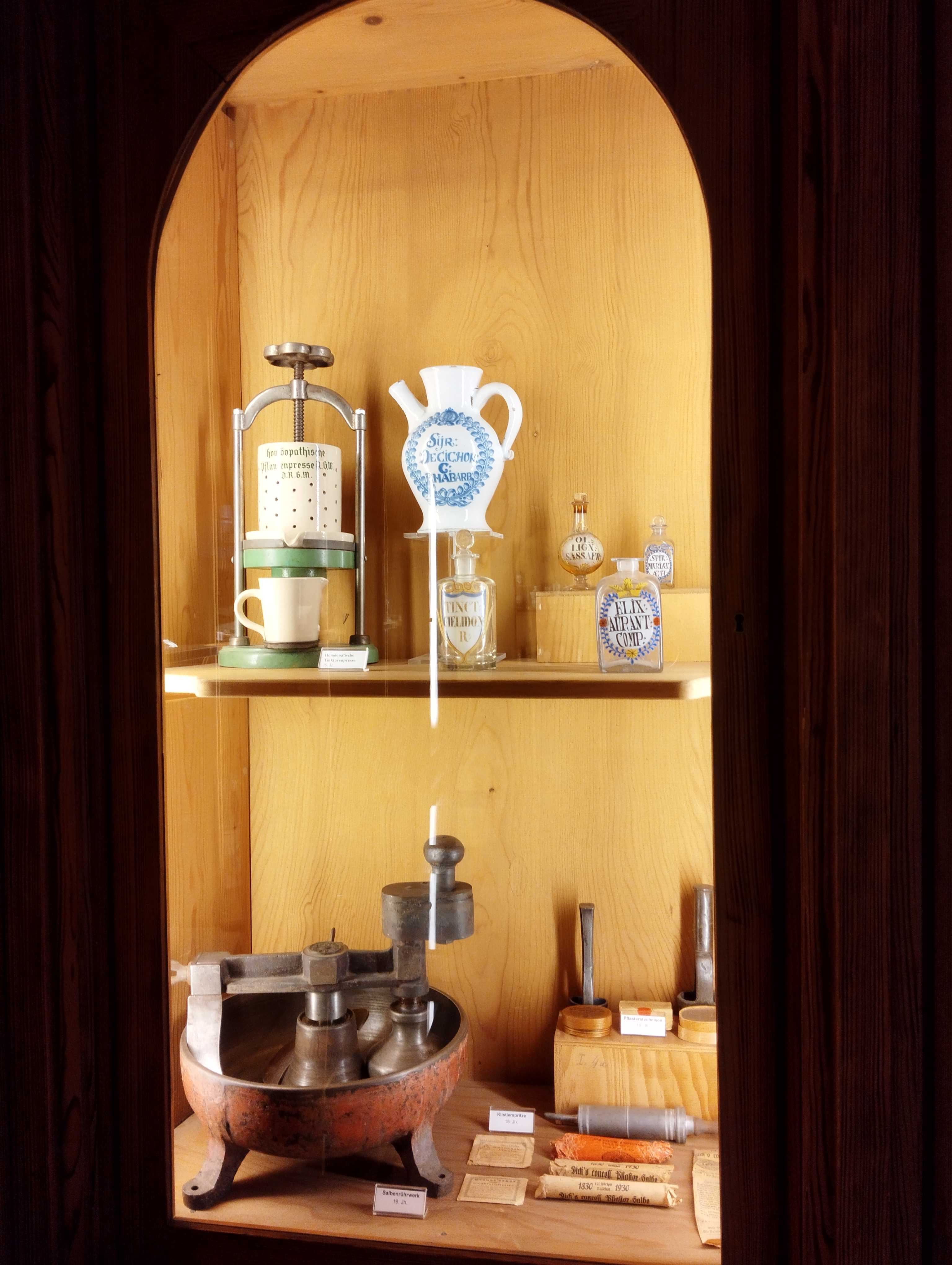 入口付近にあった昔の調合器具。