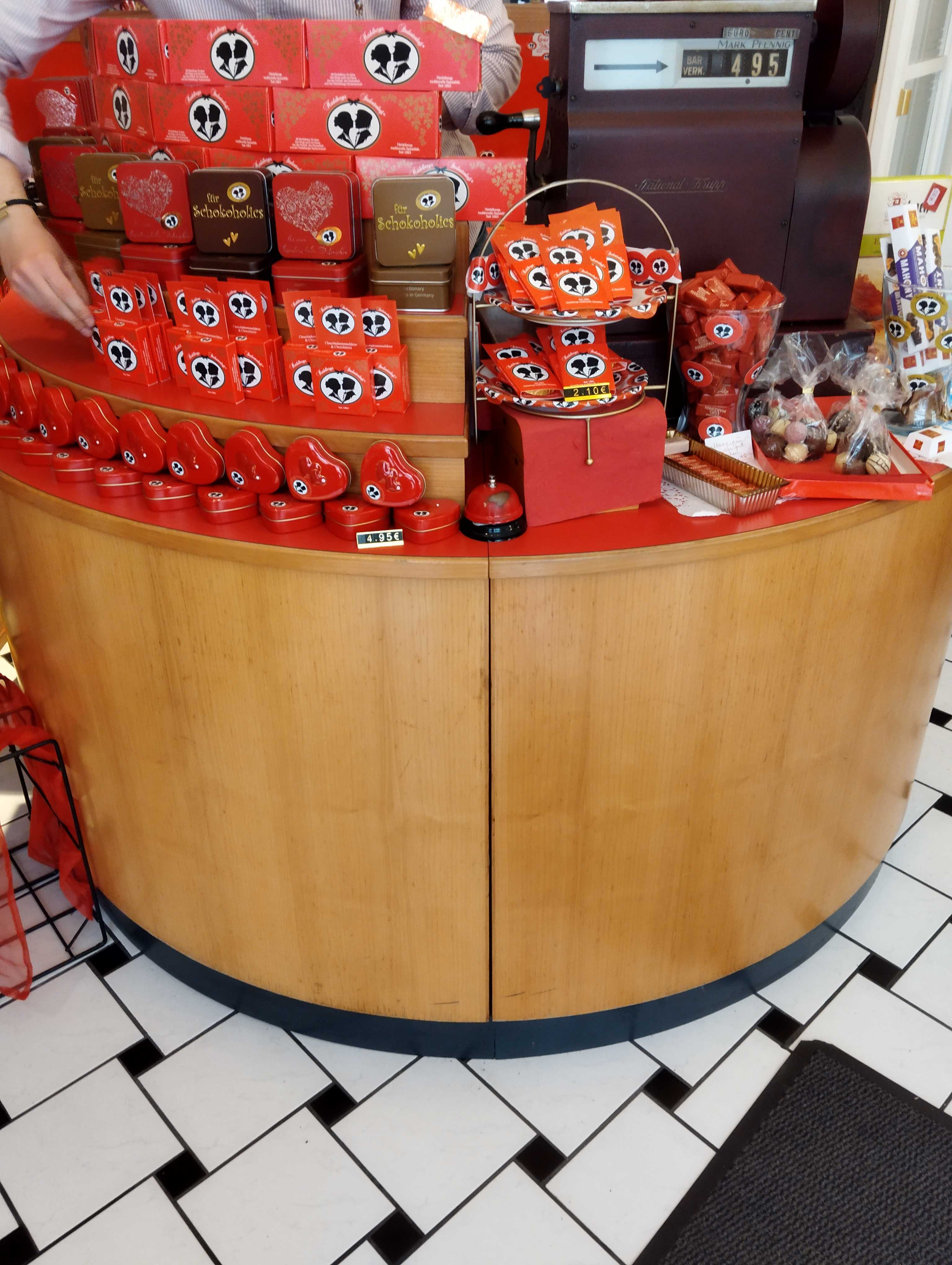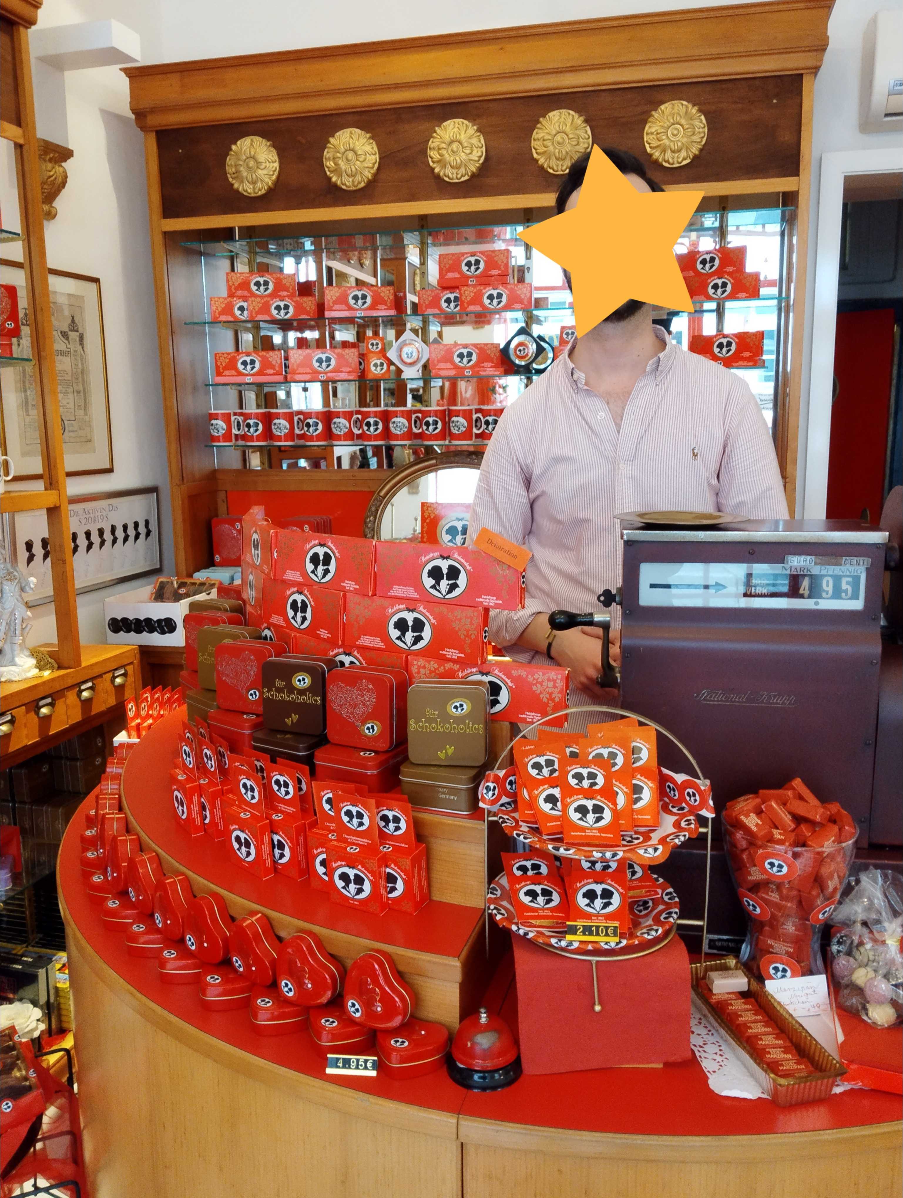 まず聖霊教会へ行ってから、「学生のキス」という名前のチョコが有名な「Knosel」(クネーゼル)というチョコレート屋さんへ。