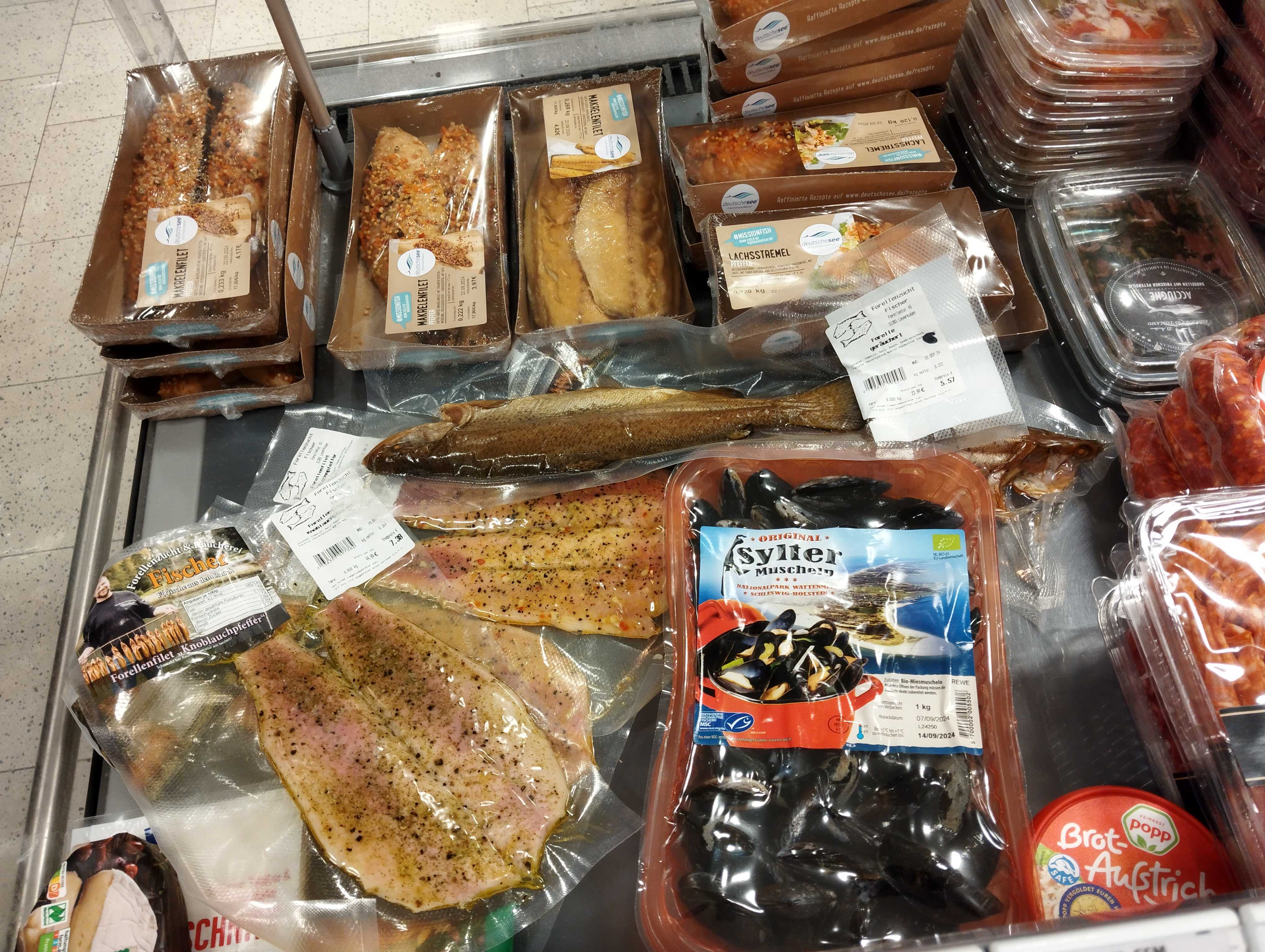 かなり悩んだムール貝の真空パックと川魚らしきものの燻製。