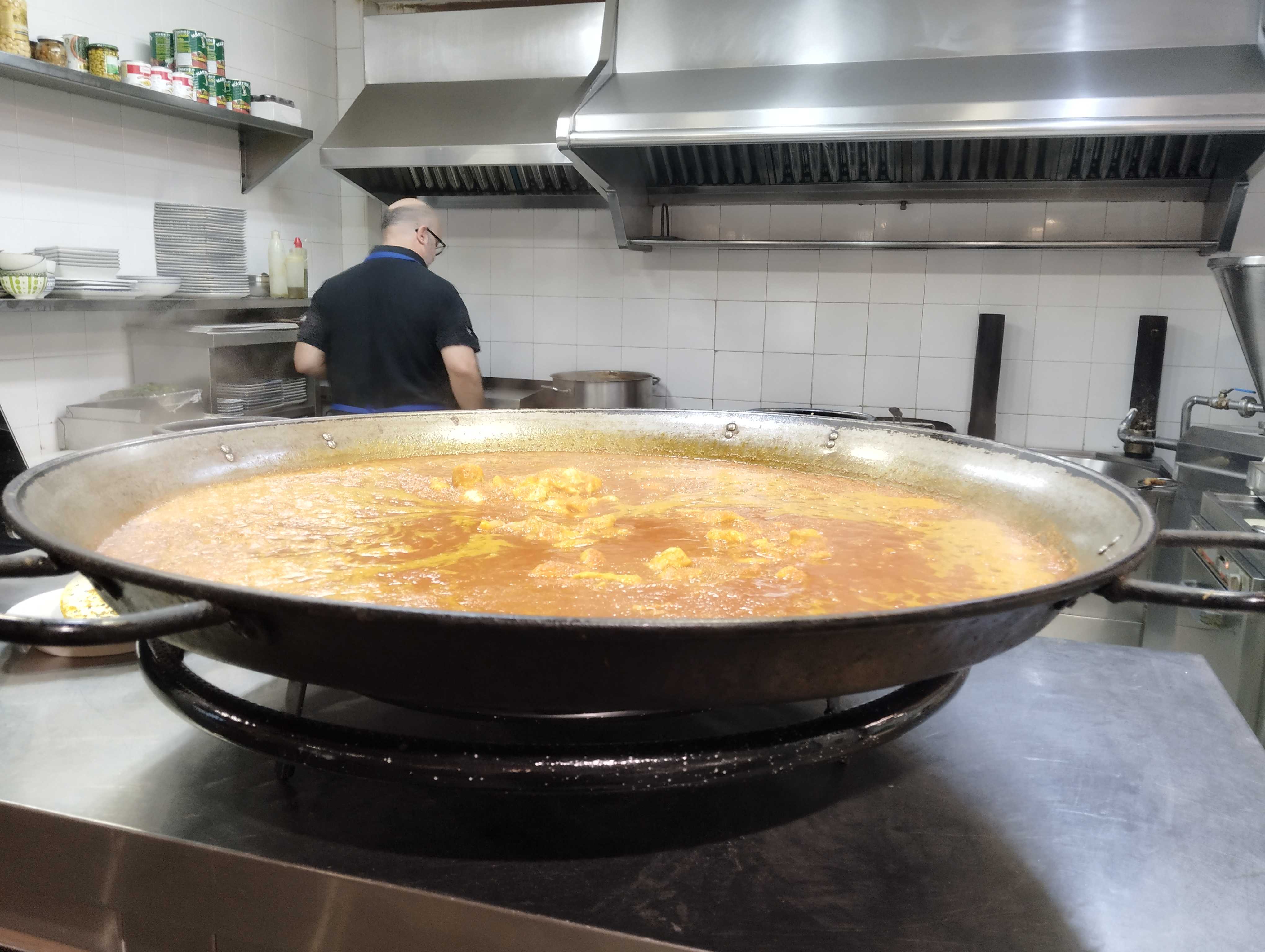店先の大きなパエリア鍋から良い香りが漂ってくる…