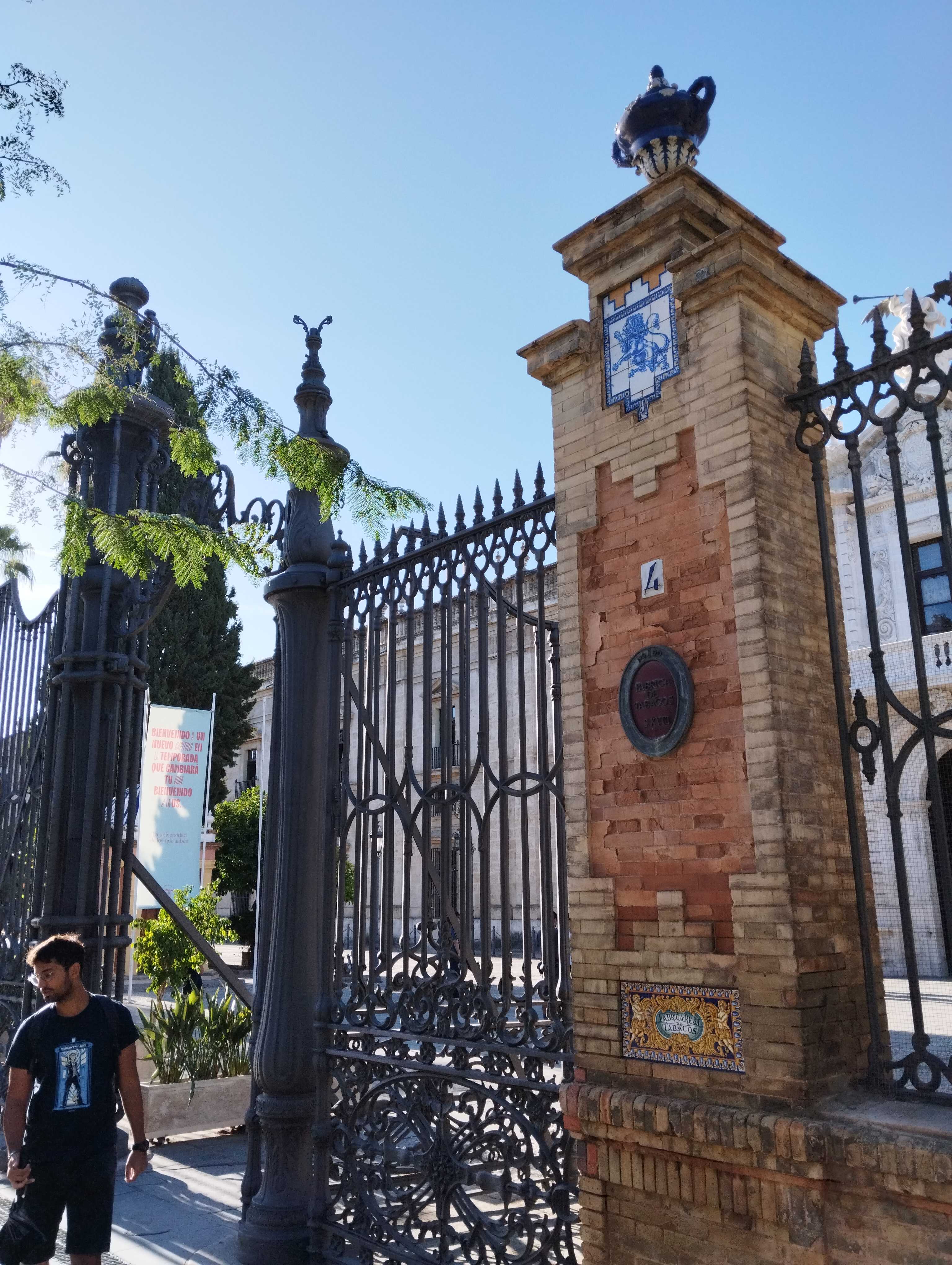 セビージャ大聖堂の入場時間までまだまだ時間があったので、先に「セビージャ大学」の見学に行ってきましたよ!歴史的建築物であり元タバコ工場の建物何だとか!タバコ工場時代の看板が残っていた。工場だったとは思えないくらいの外観です。入場料はかかりません。ただ、現役の大学なので全ての場所に入れるわけではなく1階の一部分だけのようです。中庭部分は日差しがよく入り明るい。所々に工場時代の機械や関連した用具などが展示されています。見学を終えてトイレを借りたのですが、トイレの内側の壁に英語で「観光客は家へ帰れ」と乱暴に書かれており、なんだかな~という気持ちに。たくさん観光客が来て大変なのはわかりますが・・・大学を出て、気を取り直して街歩き再開ですよ!大聖堂周辺に戻ってウロウロしていたら歴史的な雰囲気の壁を発見。どうやらセビージャの「アルカサル」だったようです。入場見学する時間はなかったので外観見学のみ。大聖堂周辺にお土産屋さんの屋台や軽食のお店がたくさんあってお祭りのような雰囲気でした。