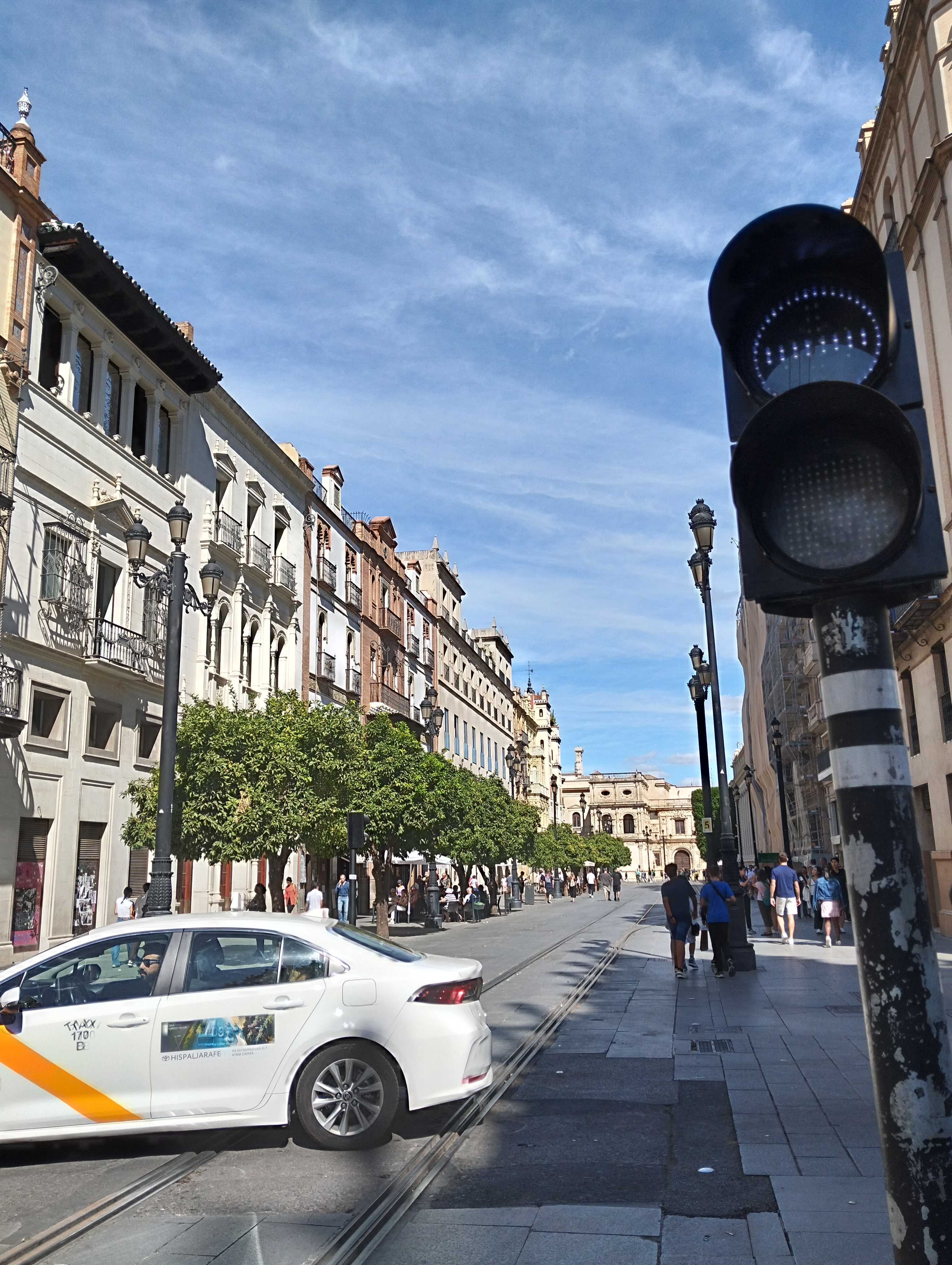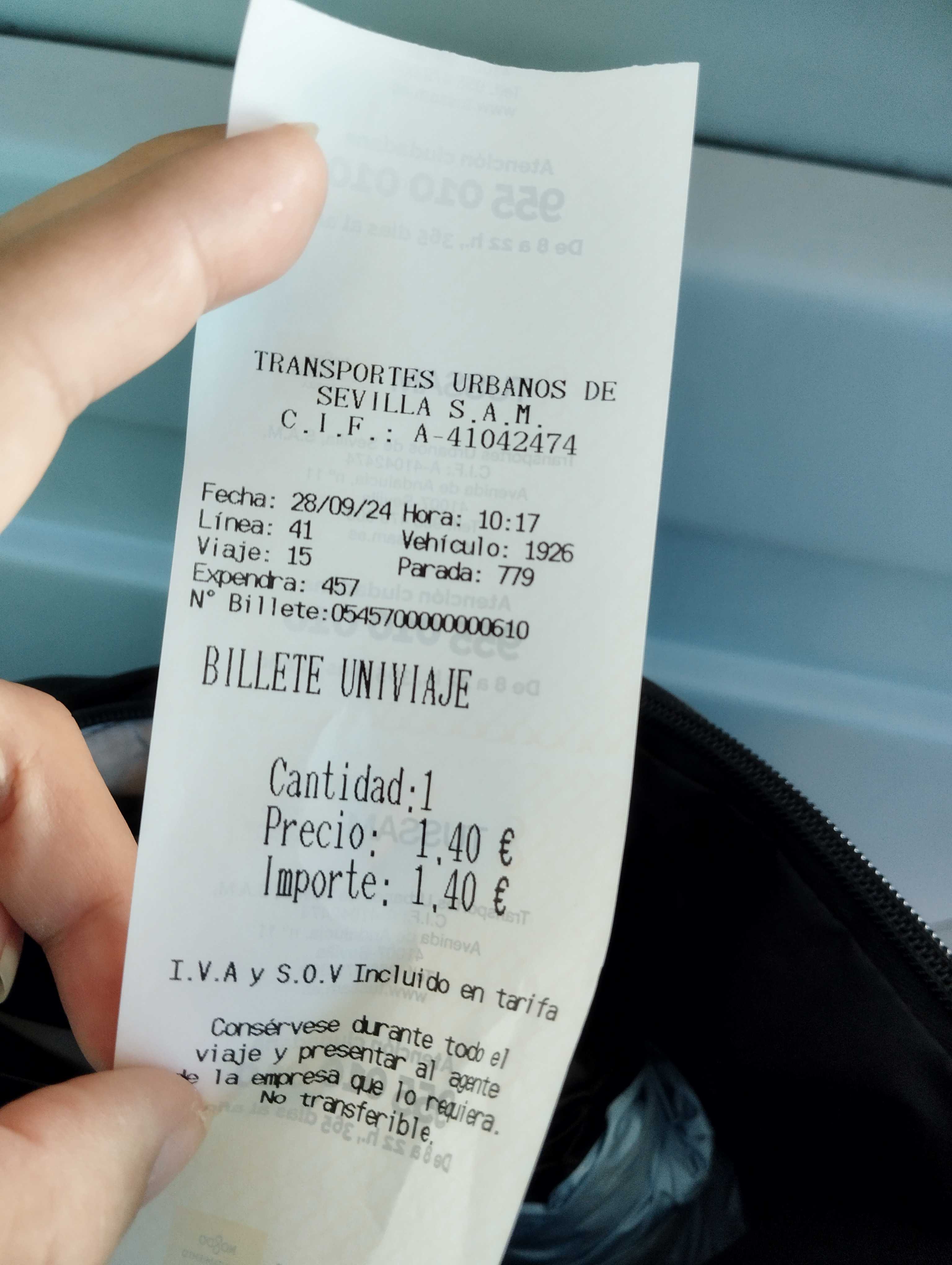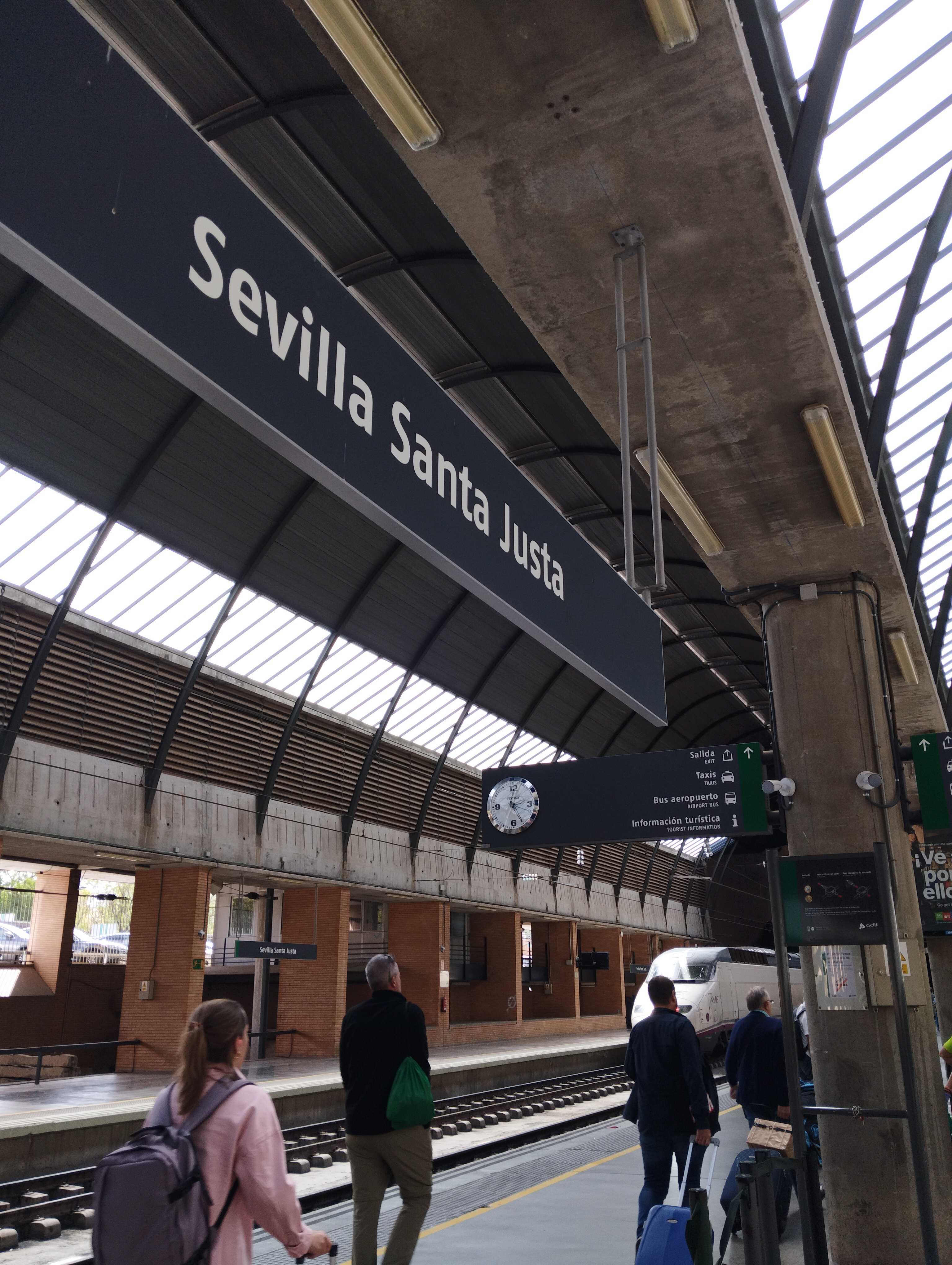 コルドバ最終日。まだ待ちが動き出す前からメスキータ周辺や「花の小径」のある歴史地区を散策しておきました。人が少ないけれどそれなりに観光客の姿も。夜の間に雨が降っていたのか道が濡れていたので足元に注意!結構滑りやすくなっていました。雨の日にコルドバを訪問される際はご注意を。10:55頃、セビージャ行きの電車の時間までまだまだ時間はありますが…万が一のために早めにアパートを出発。入口にあるボックスの中へ鍵を返却することでチェックアウト完了。ホストさんへメールでも一応チェックアウトの報告をしておきました。位置確認をしてから出発。もっと滞在したかったな…チェックアウトの時はいつもそう思う。何故かタクシーが捕まらずスーツケース2つをコロコロ押しながら中央駅方面へ歩くことに💦タクシーが通ってもお客さんが乗っているので通り過ぎて行くし…止まっているタクシーには運転手さんいないし…アルカサル通りを通っていきます。アルカサルの壁の道路側。鳩さんのオウチになっていました。「バジェリャノ通り」(Aー431)で何台かお客さんの乗っていないタクシーを見かけて合図を送ったのですが止まってもらえません(;・∀・)タクシーが止まっては行けない道路だったのかも…「バジェリャノ通り」を抜けて「ビクトリア通り」に入った辺りでやっとタクシーが停まってくれたよ~親切な運転手さんで無事コルドバ中央駅へ12:15頃に到着。「ビクトリア通り」から中央駅までチップ込みで「6.00€」でした。アパートから駅までの距離の半分くらい歩いていたのもあってまずトイレへ。無料トイレで一安心。※結構汚れていたので除菌シート必須!利用予定のAVE3904の時刻とホームをチェック。ホームへは空港のセキュリティチェックのような荷物検査を受けて入ります。時間がかかるので1時間前には駅にいるほうが良いかと。早めにホームへ入ったので30分くらい待つことになったけれど「AVE3940、3号車ー3A」無事に進行方向座席でε-(´∀`*)ホッ手荷物は座席で抱えるようにして、スーツケースは荷物置き場がいっぱいだったので置き場の直ぐ側に。13:34になってもまだ出発しません。13:39、まだ動かないな~13:40小腹が空いたので買っておいたスペイン版ポッキーをいただきます。まんまポ◯キー。ポリポリかじっていると13:44頃にようやく出発!発車のベルもなく静かに動き出すので気をつけないと。出発して直ぐに乗務員さんが来られたのでチケットチェックかと思ったらドリンクサービスでした。デカフェとクッキーのおまけつき。1時間ぐらいの乗車時間でドリンクサービスがあるのはありがたい。セビージャまでの進行状況が表示されるので見ていると楽しい。移動中の風景は大体こんな感じ。こちらも人気路線らしくほぼ満席。しかし騒ぐ人もいないので静かな車内でした。