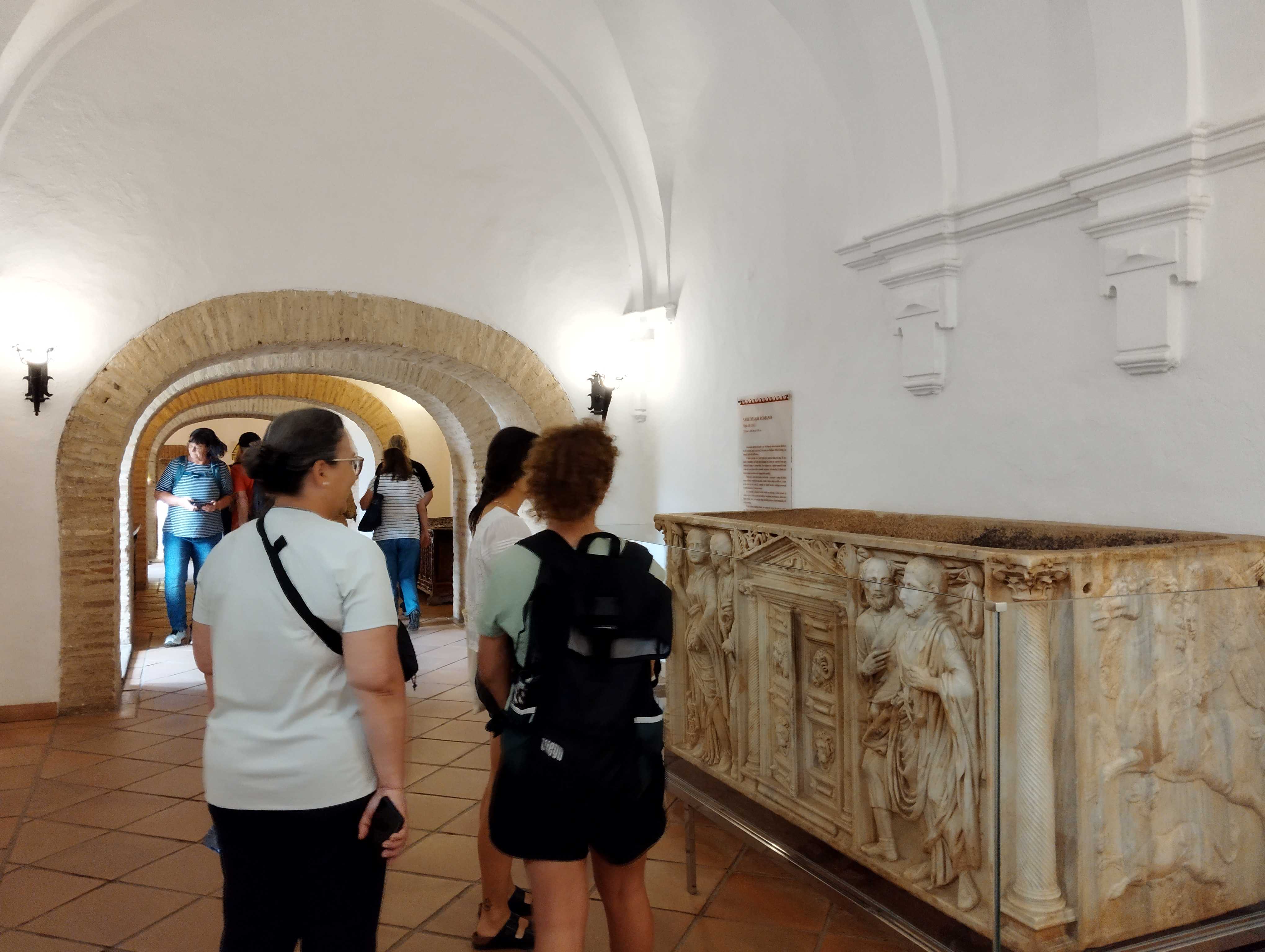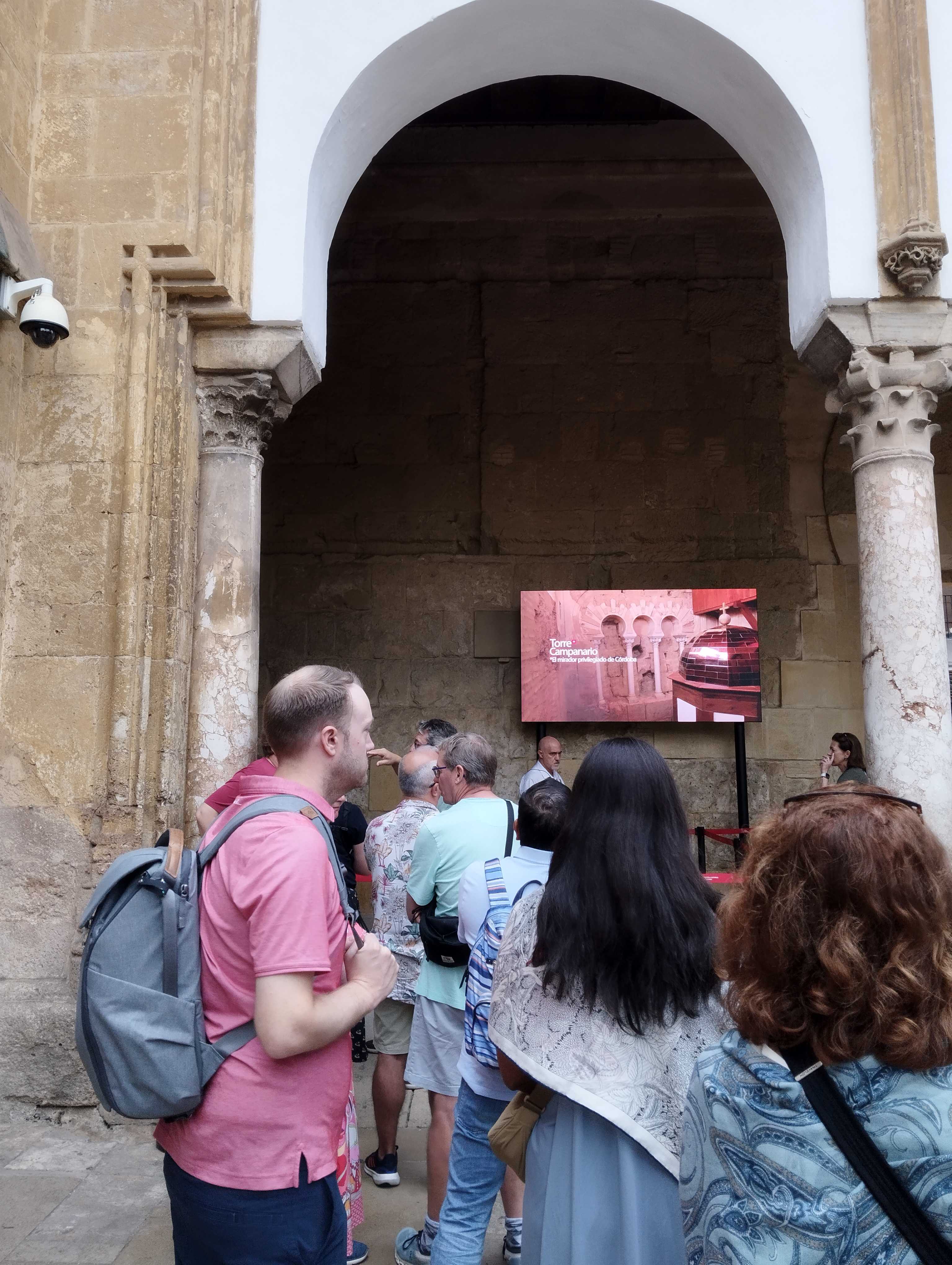 2024年9月24日(火)。朝8:00頃に起きて動き出す。借りたアパートは「メスキータ」のある「カルデナル・ゴンサレス通り」沿いにあるので移動がとても楽でした。「メスキータ」まで徒歩3分程。観光地ど真ん中なので賑やかなのは承知の上。「トリウンフォ広場」コルドバで有名な景勝地だそうです。カフェもあってモーニングをする人も多くて賑やか!直ぐ側にはサン・ラファエルの像があります。お土産屋さん兼カフェは大人気!人でいっぱい。広場周辺の様子。移動して広場のすぐ側にある「アルカサル」へ向かいます。本日のメインイベント。観光客がいっぱいでチケット売り場にしばらく並びました。入場時間が区切られているので、1番近い入場時間のチケットをお願いしたらすぐのものが開いているとのことでお願いしました。入場料は大人1人5.00€。カード払いで5€をお支払い。入場の列から遺跡の一部をパチリ📷️いよいよ入場です!最初は小さめの執務室のようなところへ。絵画が飾られているかと思ったら窓の向こうの別の窓の前にいた実際の人でした^^;