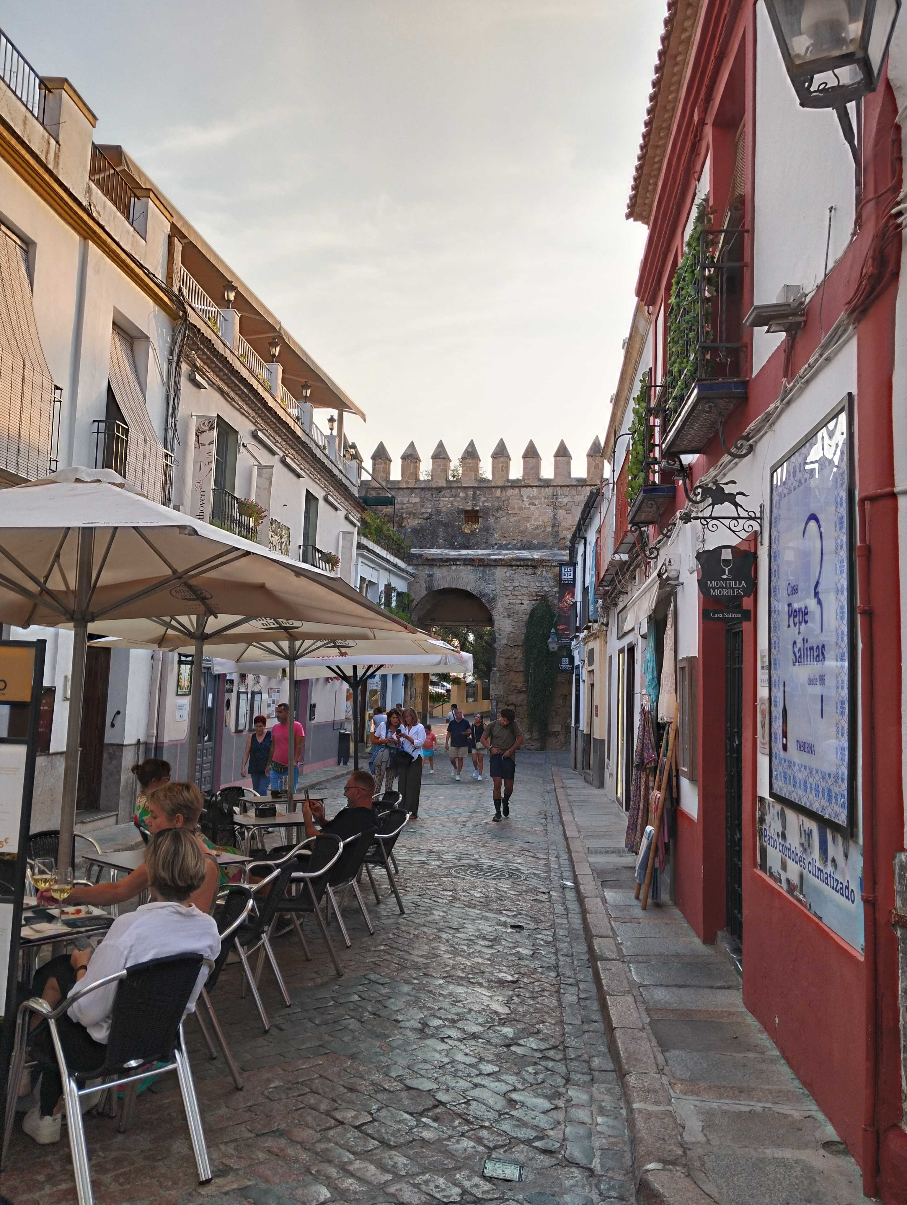 「Puerta del Puente」(城壁の一部だった歴史的門)まで戻ってきました。此処から先が主に歴史地区。「アルカサル」や「メスキータ」からも近いです。この門を抜けてすぐのところにちょっとした広場があり、観光名所になっています。カフェもあるので人でいっぱい。早朝だと殆ど人のいない広場を体験できます。歴史地区側から見た門。中に入れそうですがどうなんだろう?チラシを配っていて気になっていたお店へ行ってみることにしました。タベルナ(居酒屋)「LA MANUELA」さんへ。観光客も入っているが地元のお客さんも結構来ている。コルドバの名物料理が食べられるお店で、それらを選択できるセットメニューを選択!スティック状にカットされた「揚げナス」に甘いソースがかかった名物料理。カリカリに揚げられていて、中は熱々のとろりとした食感。甘いソースは黒蜜のような、はちみつのような、どこか酸味も感じるもので揚げナスとの相性ピッタリ!「Berenjenas fitas ~」と書いてあったらおそらくそれがこの名物料理だと思われます。揚げたては口内のやけどにご注意を!後「揚げ物」なので炭酸水かビールがあったほうが最後まで美味しく食べられるかも。「Flamenquin(フラメンキン)」豚肉で生ハムを巻いて揚げたもの。どこかとんかつのような印象。セットメニューのメイン料理選択肢の中に入っていたので単品のお値段はわからず。付け合せに酢漬けのキャベツと揚げたてパタタス・フリータス(フライドポテト)にマヨソース。見た目の印象以上に量があって揚げ物づくしなので炭酸飲料必須。豚肉で生ハムを巻いてあるのでそのまま食べても塩味がして美味しい♡このあたりで白ご飯が欲しくなった。パンも良いが、熱々の白ご飯にこのフラメンキンを乗せて食べたらまさにカツ丼(塩味)…とんかつソースをつけて食べても合いそうな感じだ。デザートには「自家製たまごプリン(FLAN DE HUEVO)」を選択。カラメルの程よい苦味がいいアクセントになった、どこか懐かしいプリンでした。飲み物とデザート込みのセットメニュー。お一人様18.50€。サービスが良かったので担当のお兄さんにチップとして1€渡したらめっちゃ喜ばれた。よほど嬉しかったのか、店先までお見送りしてくれた。周辺のお土産屋さんをうろうろ見学。「メスキータ」周辺にはお土産屋さんいっぱいあります。カフェやレストランもあるけれどややお高めな印象。少し離れただけでややお得になっているかも。