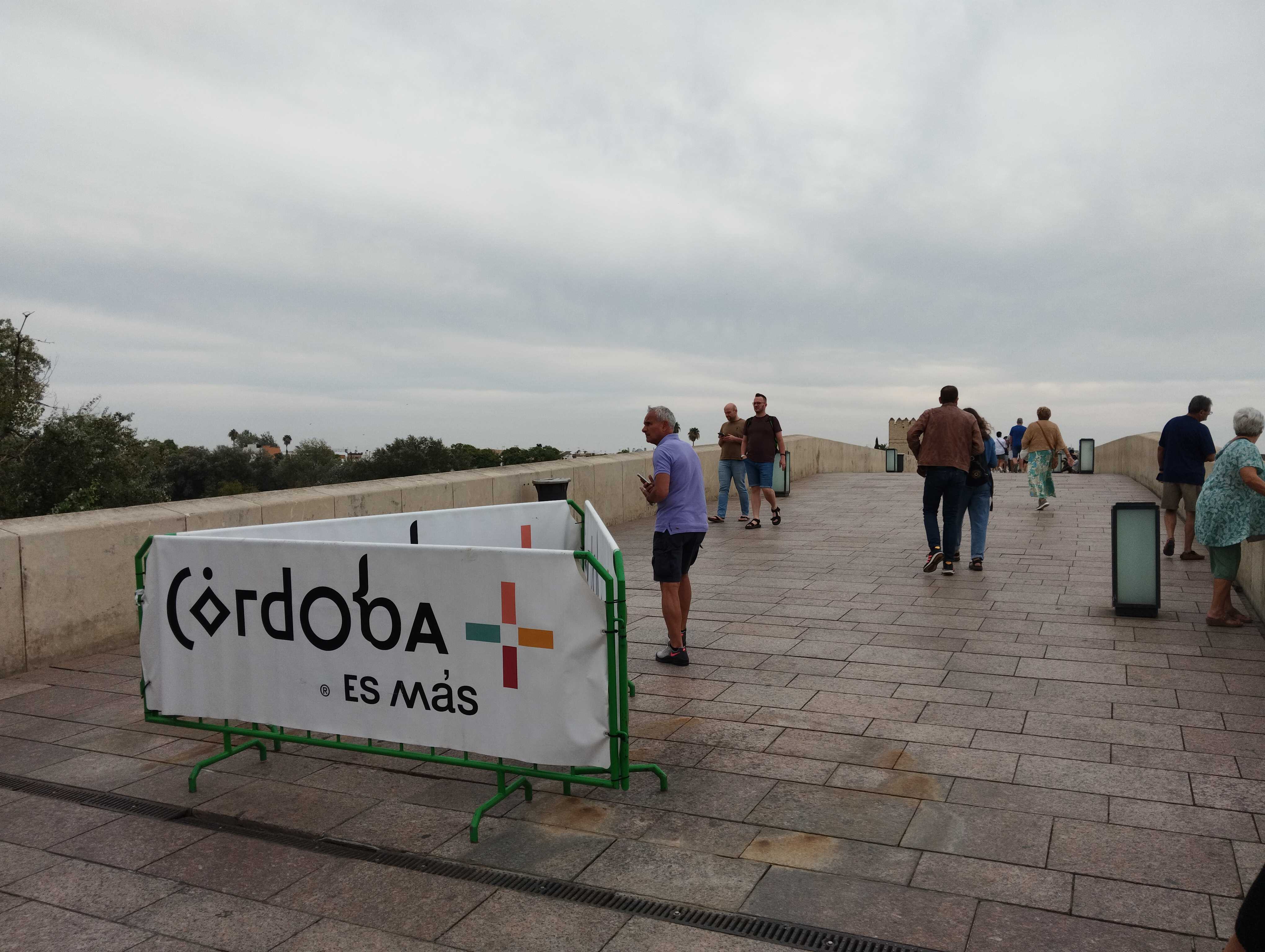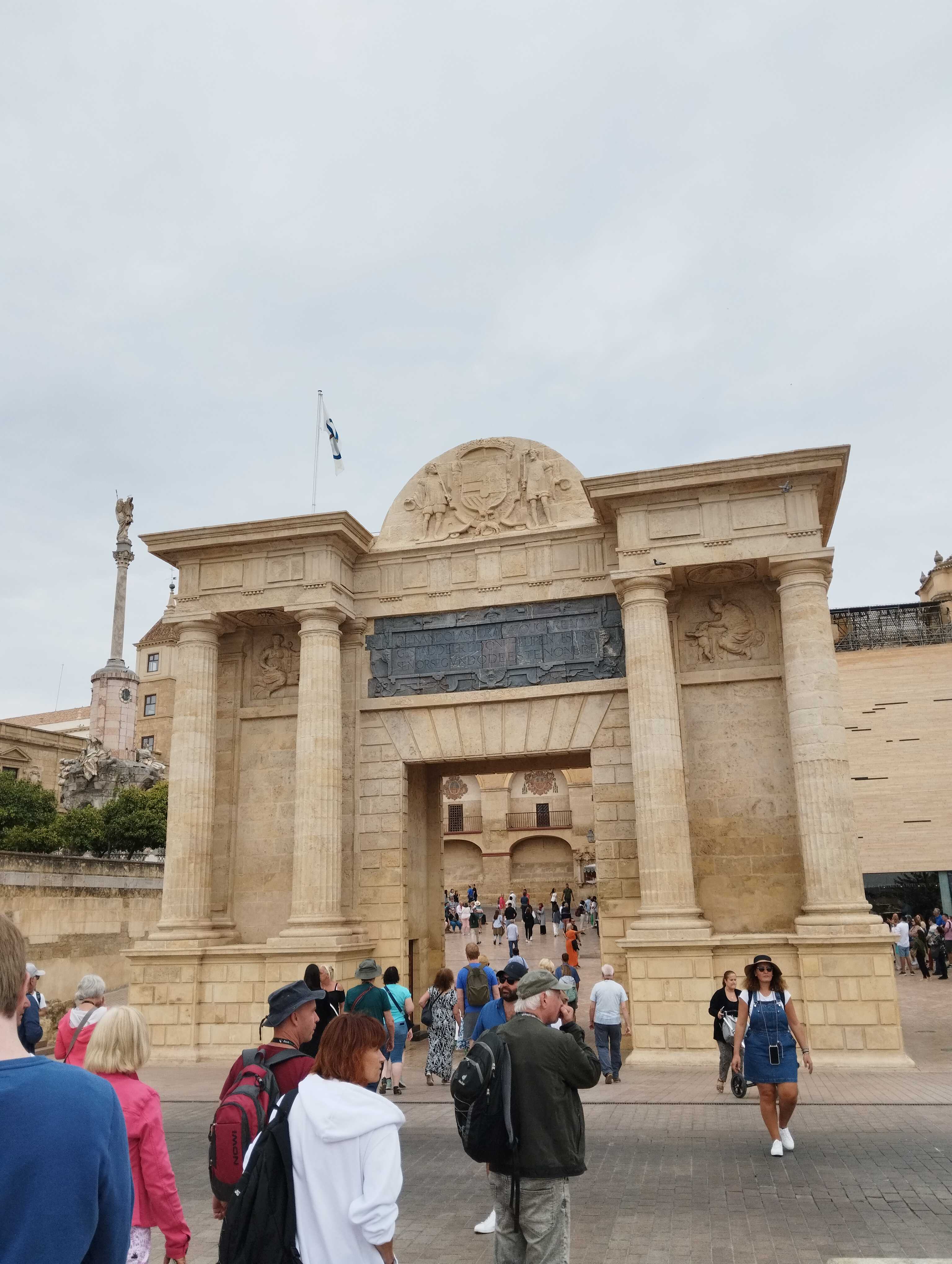 庭園の見学を終えて建物内に戻ってきました。団体さんが庭園の方に行っている間にしっかりみられなかった内部見学をば。執務室のような、会議室のような。手前にロープがあり、机の近くまで行くことはできませんでした。モザイク画も間近で見学できてその他の展示物もじっくり見学できて満足感たっぷり!そろそろ外に出ようかなーと思ったら、出口は庭園の脇。先程行ったトイレのある広場側にあるという・・・再び庭園へ^^;「アルカサル通り」(グアダルキビル川沿い」側に門があり、そこが出口。関係者の車や関係者が出入りできますが、観光客はその門から外に出ると元には戻れません。監視員がいなさそうで居るようなのでキッチリチェックされていました。「アルカサル」の観光を終えて「アルカサル通り」へ出ました。道に沿って歩き次の目的地へ。そこそこの敷地があるのでしばらく「アルカサル」の外壁を眺めつつ歩きます。少し進むと修復工事中の史跡が見えてきました。「Мolino de Albolafia」という水車場です。かなりボロボロで修復も大変そう・・・ここは今のところ(2024/9/24時点では)道路から眺めるしかできません。「コルドバのローマ橋」(Puente Romano de Corudoba)歴史的な橋が見えてきた!元は紀元前1世紀に作られたのだとか。現在に至るまでかなり修復されたようです。ローマ橋のすぐ手前(街側)にある歴史的な門。イササ通りには車やバスだけでなく、時々馬車まで通ります。横断に注意です。この時は珍しく門を潜る人が少なく、全体を写真に収めることができた☺️コルドバ到着時は人で一杯で大変賑やかで賑やかで・・・